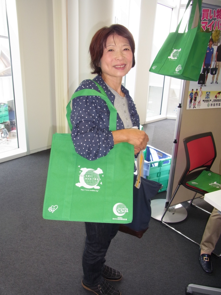 平成24年10月7日(日)、秋田市にぎわい交流館AUで開催された「ごみ減量市民フォーラム」で「究極のマイバッグ」のモニターを募集しました。