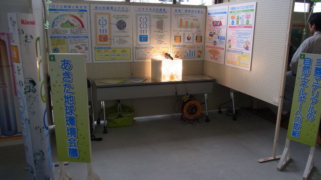 平成24年10月21日(日)、鹿角市市民交流センターで「鹿角市エコフェア」が開催され、あきた地球環境会議でも学習ツール【Touch & Feel the Freon!】を出展しました。