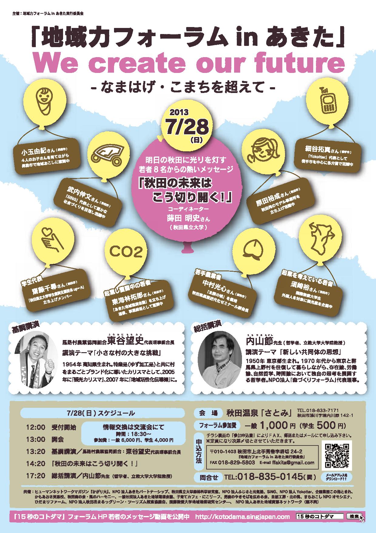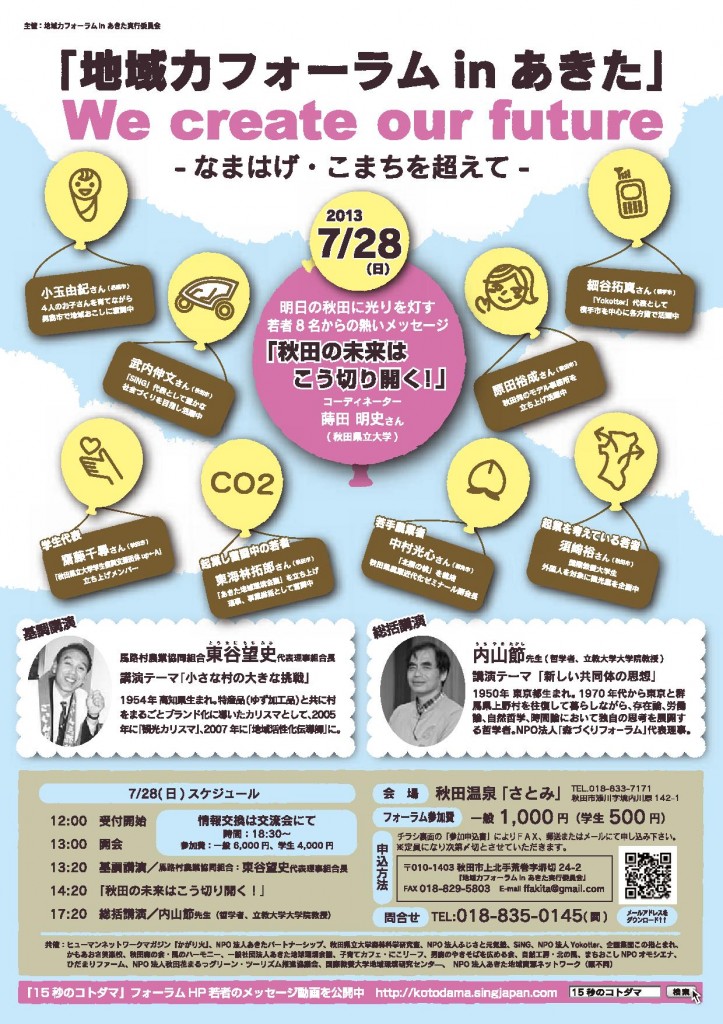 「地域力フォーラム in あきた」We create our future -なまはげ・こまちを超えて-が開催されます