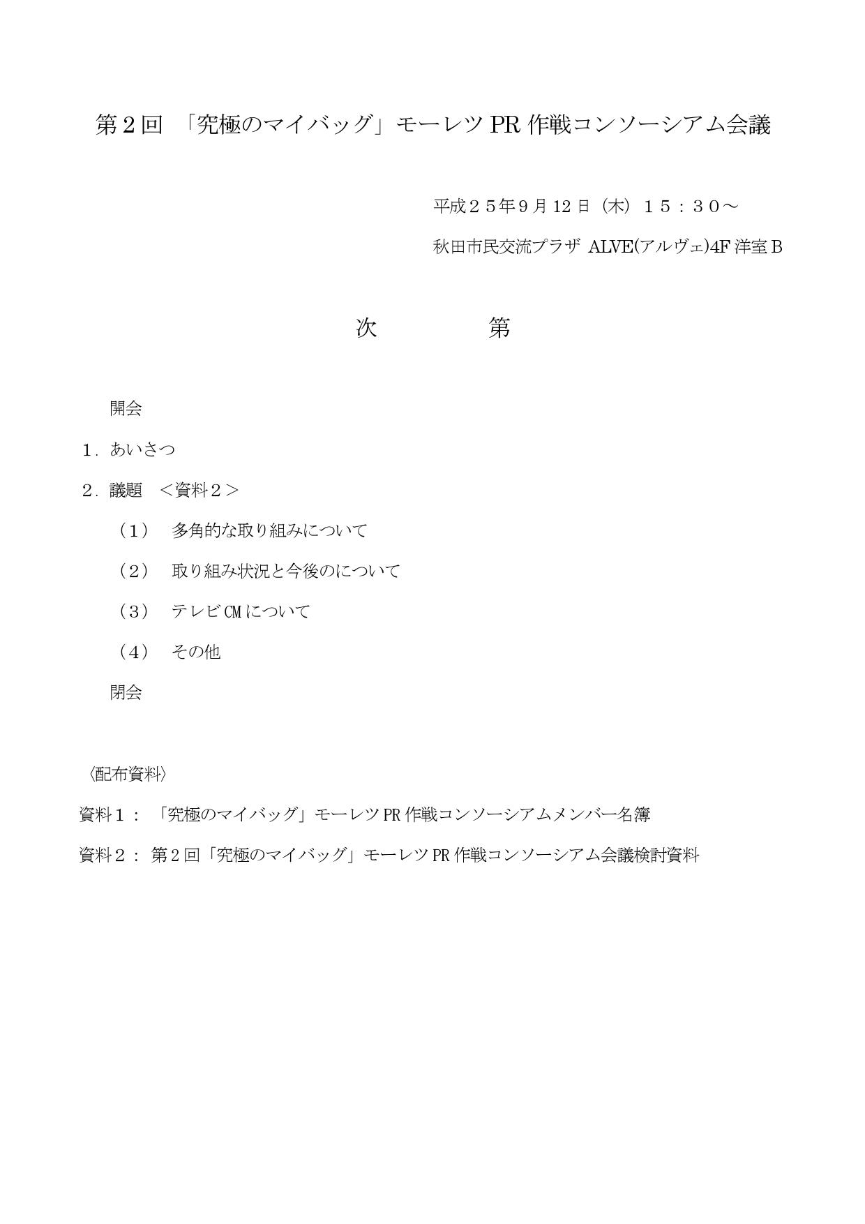 平成25年9月12日(木)に、第2回『究極のマイバッグ』モーレツPRコンソーシアムが開催されました。