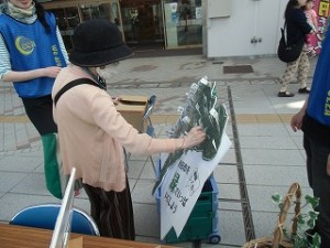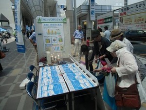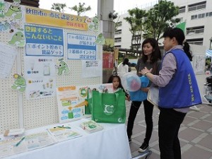 秋田市では、人にも、地球にもやさしい市民を 「 e-市民」 と呼び、市民がエコを楽しみにながら生活ができる街づくりに取り組んでおります。このe-市民システムが、本年度リニューアル!参加者のエコな活動にポイントがつく、e-市民アクションポイントが導入され、環境展で秋田市地球温暖化防止活動推進員の協力のもと、多くの市民へ参加を呼びかけました。