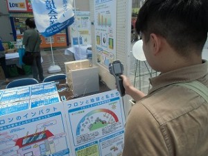熱画像カメラ(サーモカメラ)で温度を計測し、断熱効果の違い(断熱材なし、フロン使用断熱材、ノンフロン断熱材)をご自身で検証して頂きました。ノンフロン断熱材の方が、断熱効果が高いことを体感し、フロンを使わない製品への理解を深めました。