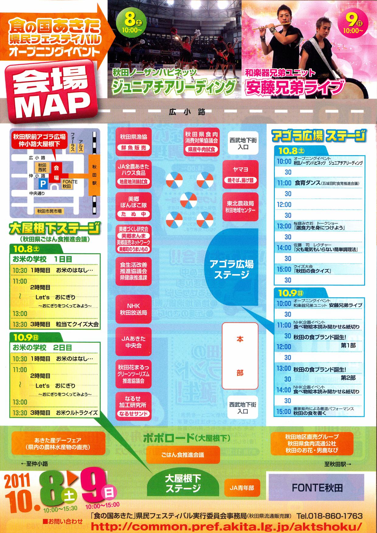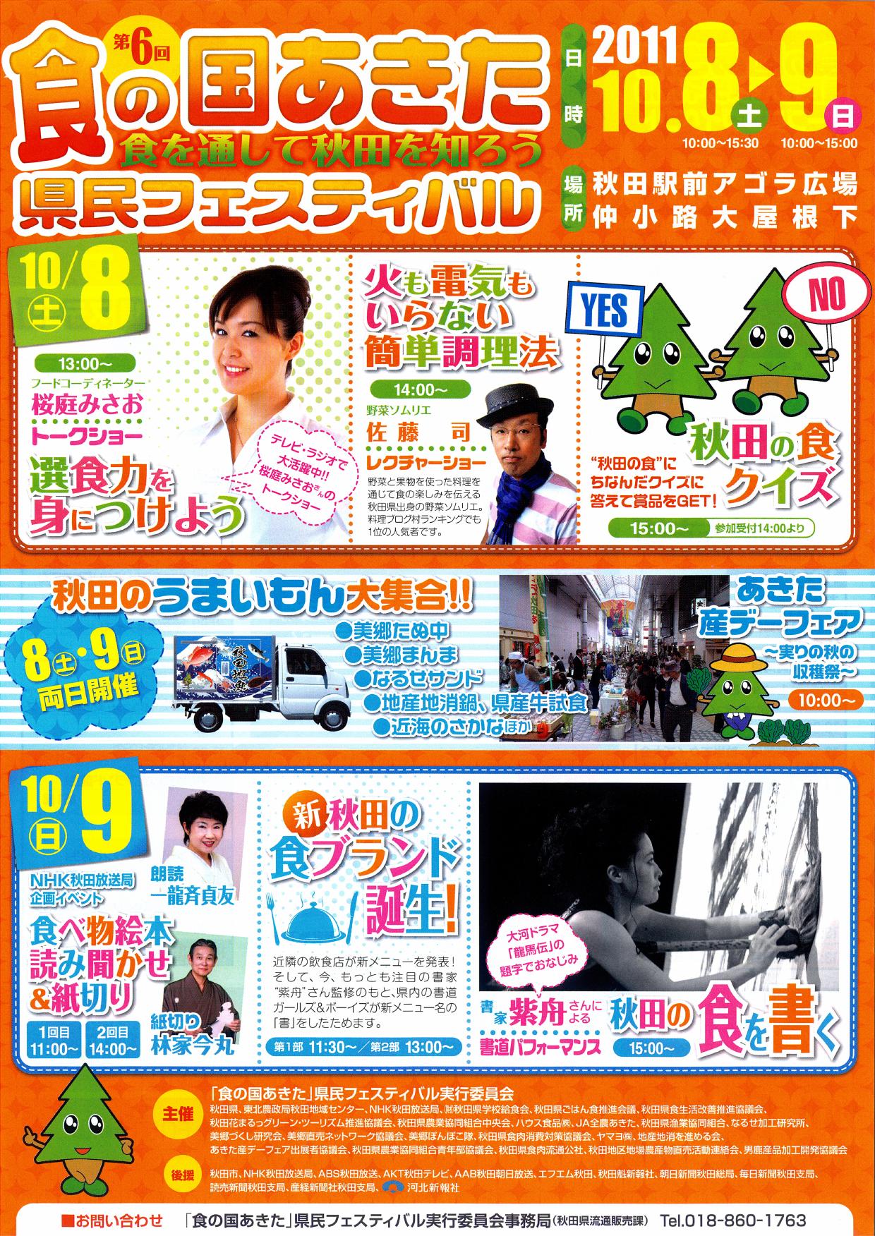 平成23年10月8日(土)、9日(日)が、秋田駅前アゴラ広場及び仲小路大屋根下で開催されます。