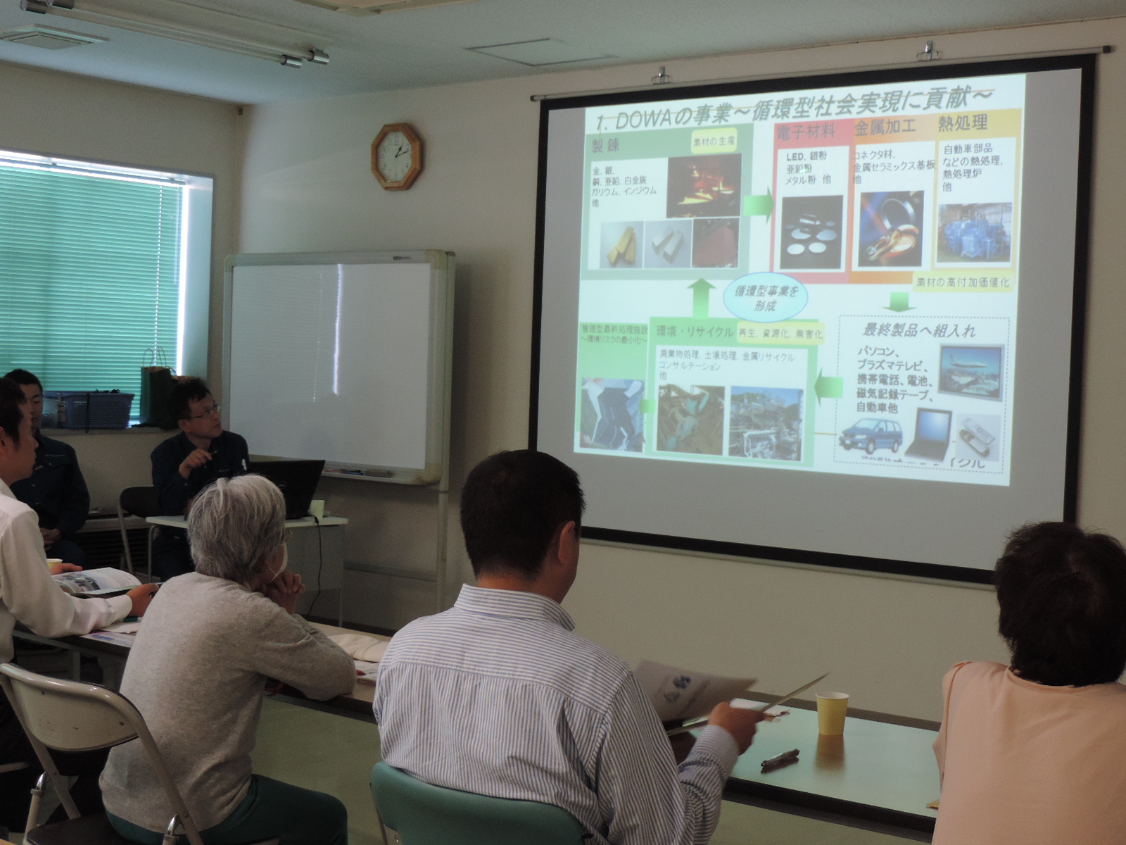 続いて、フロンを回収しているエコリサイクル株式会社の代表取締役常務の谷口浩治さんと、回収したフロンを破壊しているエコシステム秋田株式会社環境処理課の森田宜典さんから、それぞれ会社の事業内容についてご説明いただきました。