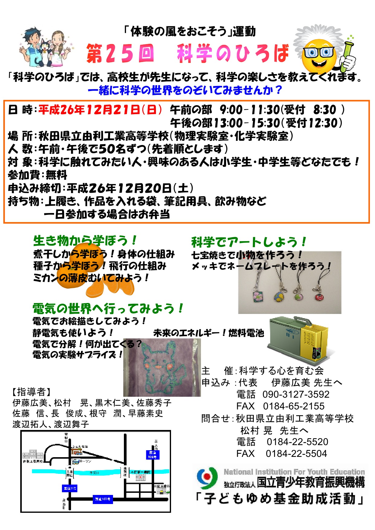 高校生が先生になって科学の楽しさを伝えるイベント【科学のひろば】が由利本荘市で開催されます。 一緒に科学の世界をのぞいてみませんか!