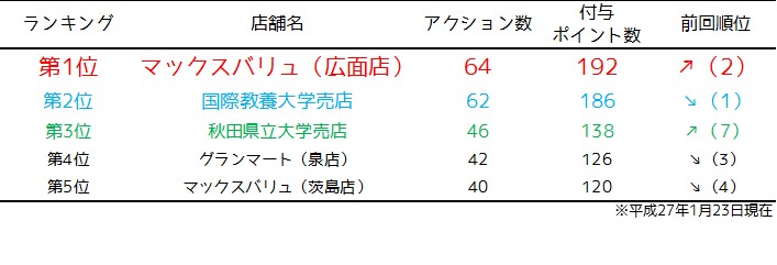 ポイント付与期間が残り約1週間となった「あきエコどんどんプロジェクト」ですが、日常的にためることのできるアクション「レジ袋辞退」「マイ箸の利用」へのポイント付与に協力いただいている事業所(店舗)における、アクション数をカウントしてランキングとしてまとめました。