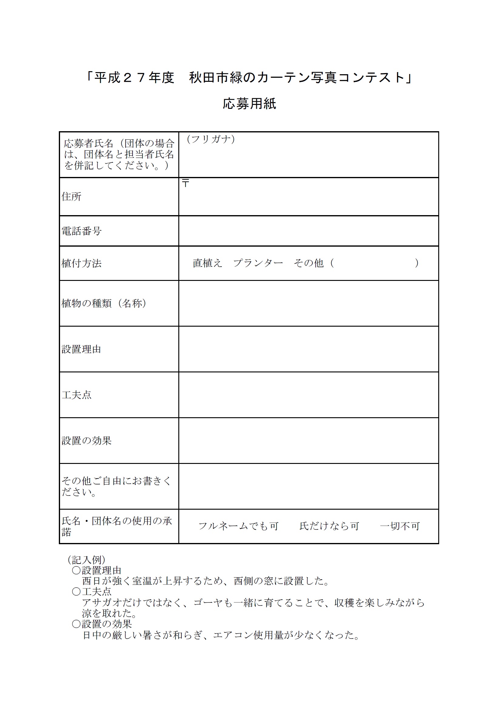 秋田市緑のカーテン応募用紙