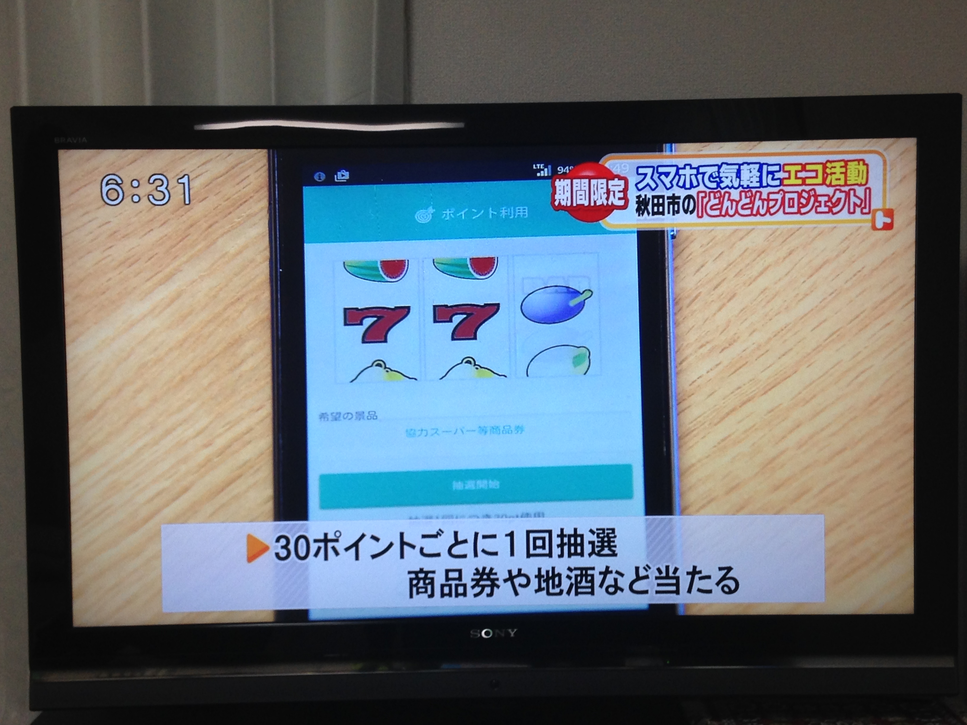 2015年10月5日放送のAAB秋田朝日放送『トレタテ!』にて、「あきエコどんどんプロジェクト」を取り上げていただき、協力店舗にお邪魔しての”ポイント獲得”や、”抽選”の体験レポートという内容でした。