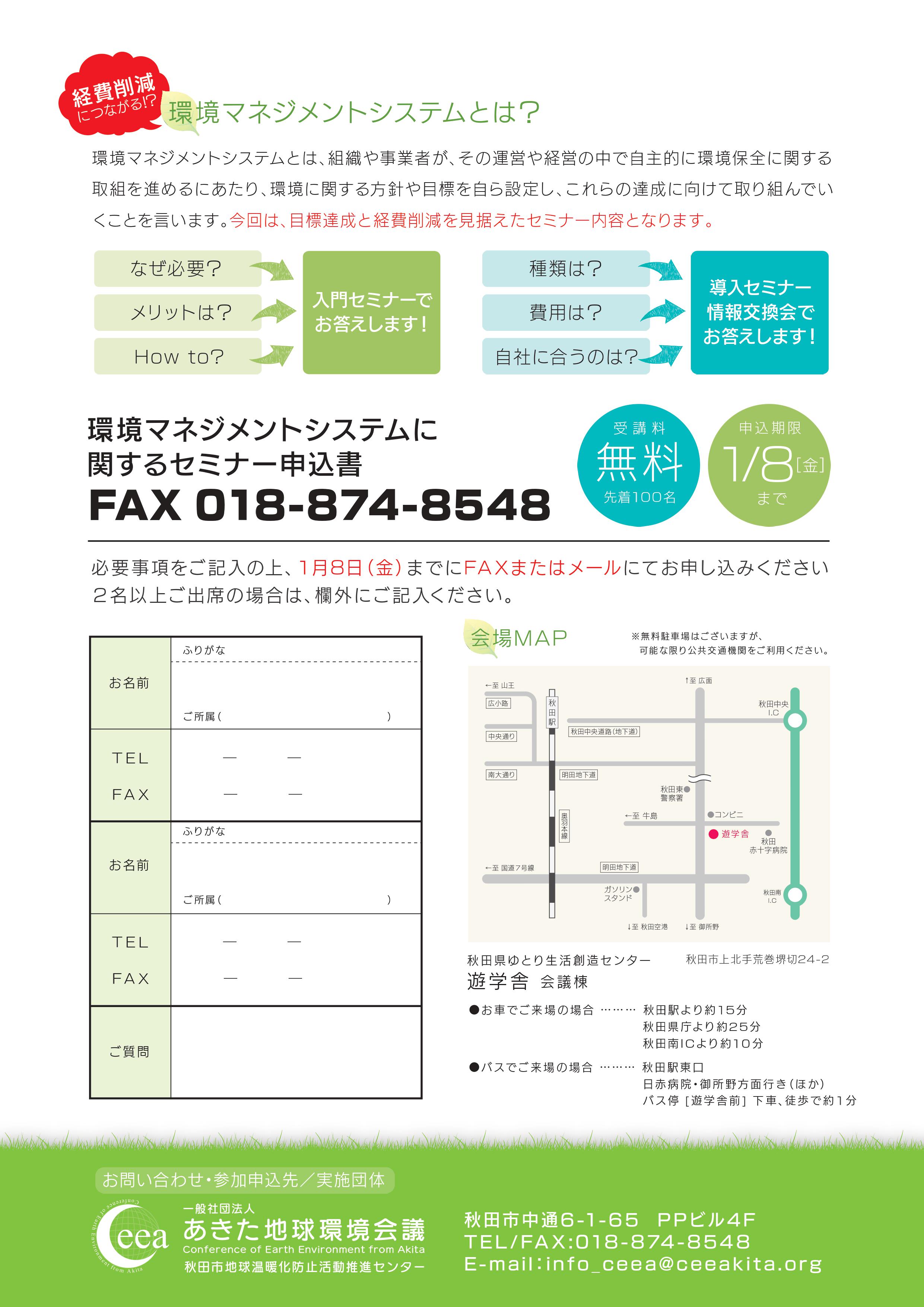 ”経費を抑える環境経営の実践へ”向けて、秋田県内の事業者を対象に『環境マネジメントシステムに関するセミナー』を開催します。