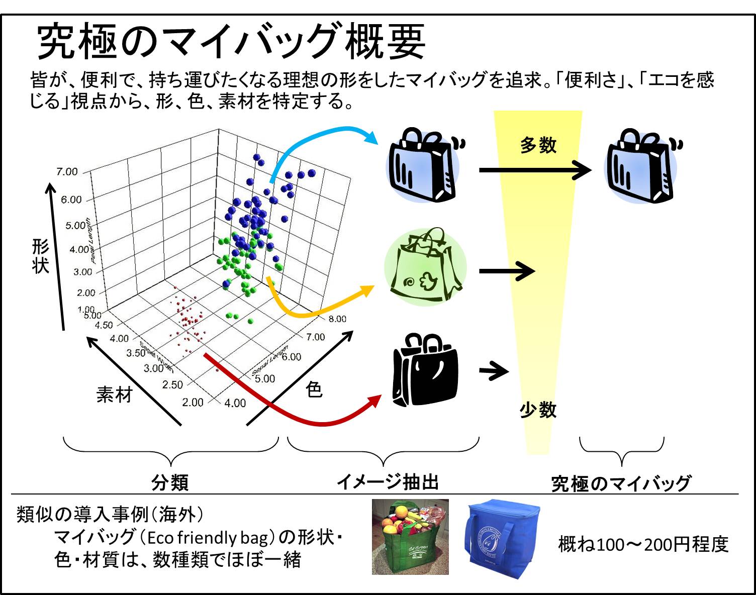 議事の中では、まず「背景」「目的」「調査フロー」の確認に続いて、CEEAが提案する2つのマイバッグシステムについての概要説明を行いました。