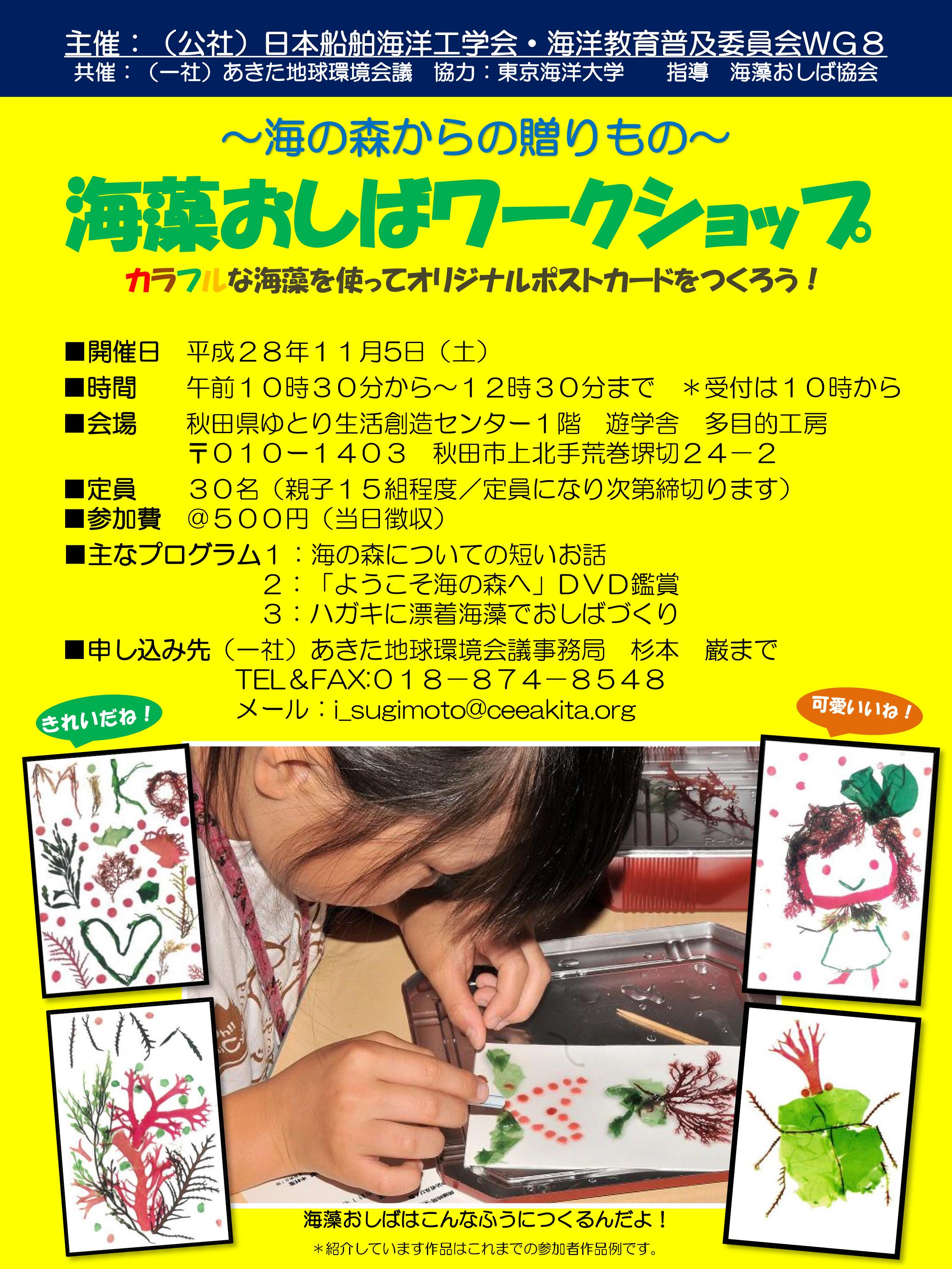 申し込み先:(一社)あきた地球環境会議 事務局まで