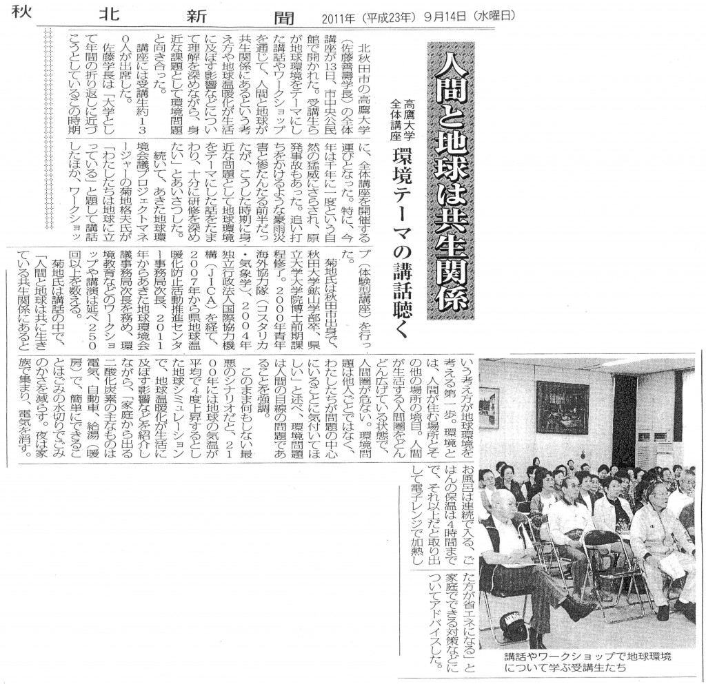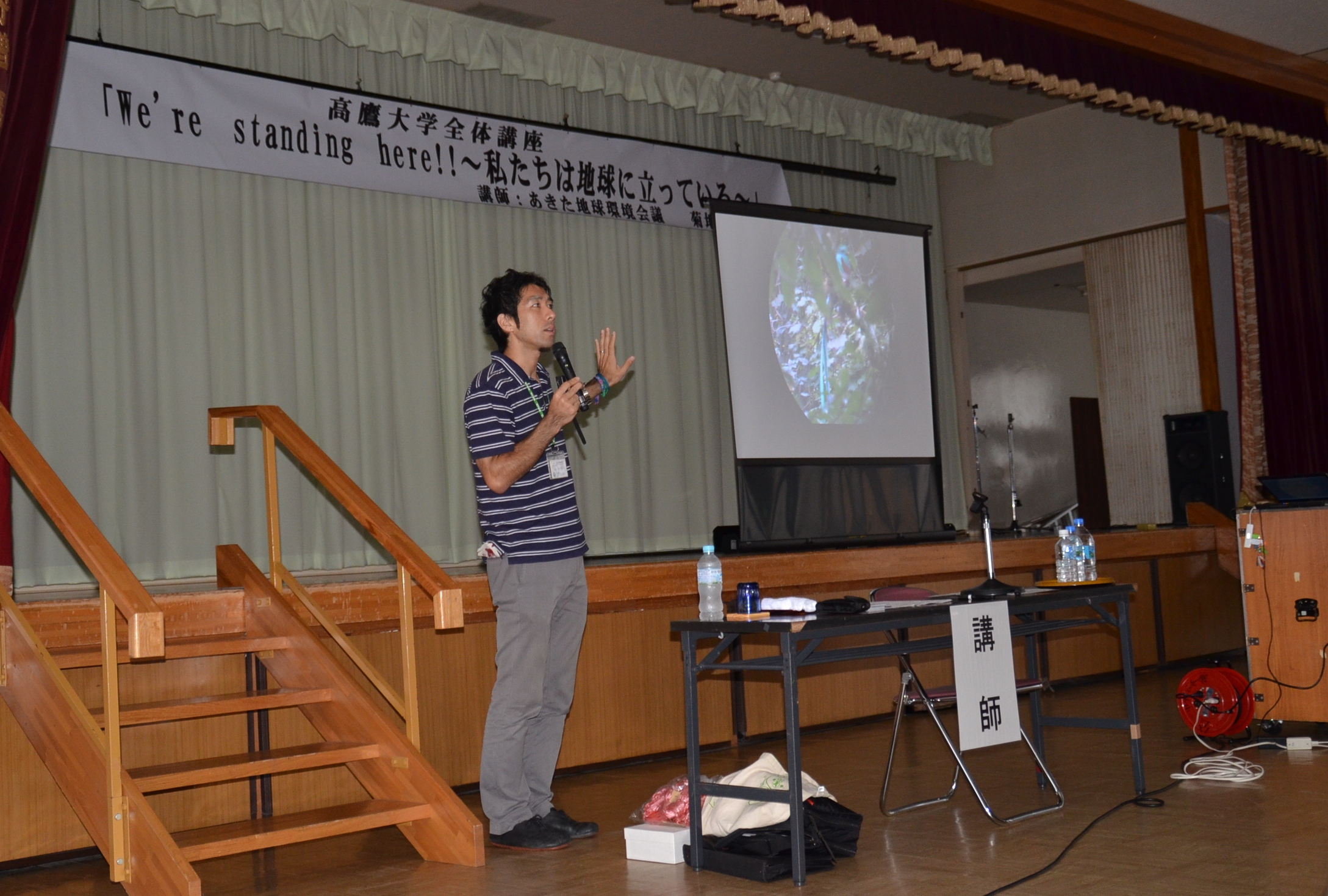 平成23年9月13日、高鷹大学全体講演会(北秋田市)が行われ、当法人の菊地格夫が「We’re standing here!!~私たちは地球に立っている~」の講演タイトルで講師を務めました。