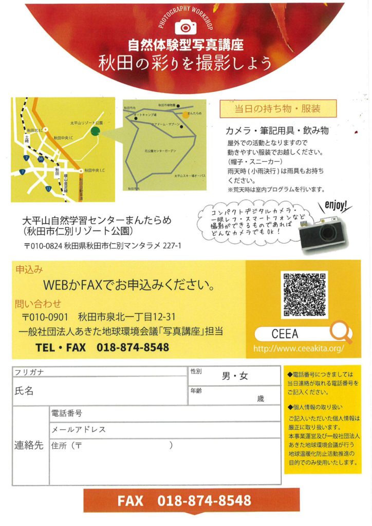 自然体験写真講座『秋田の彩りを撮影しよう』のご案内