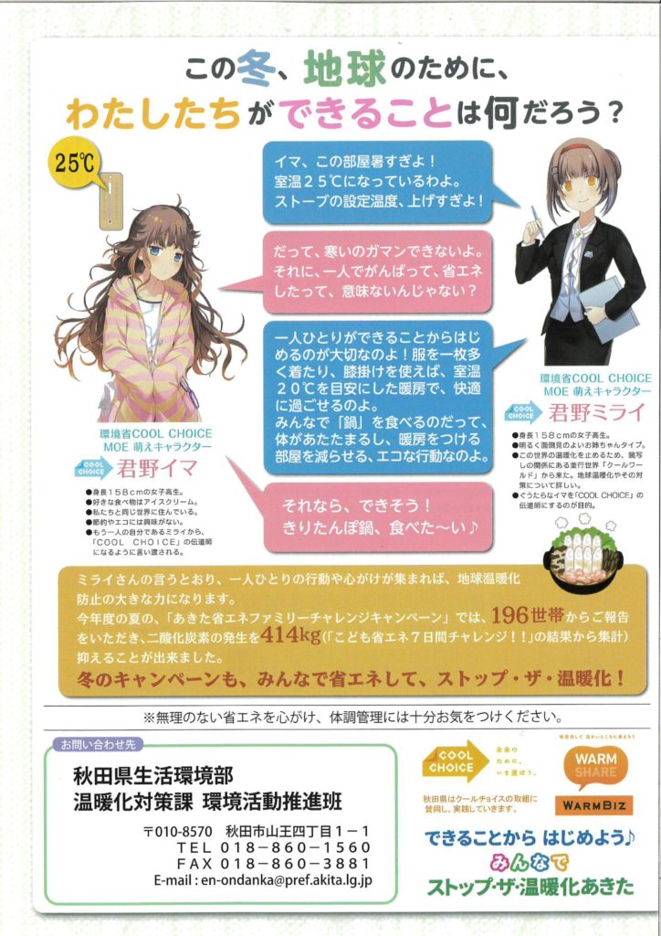 秋田県では、夏季に引き続き、「あきた省エネファミリーチャレンジキャンペーン(冬季)」を実施します。