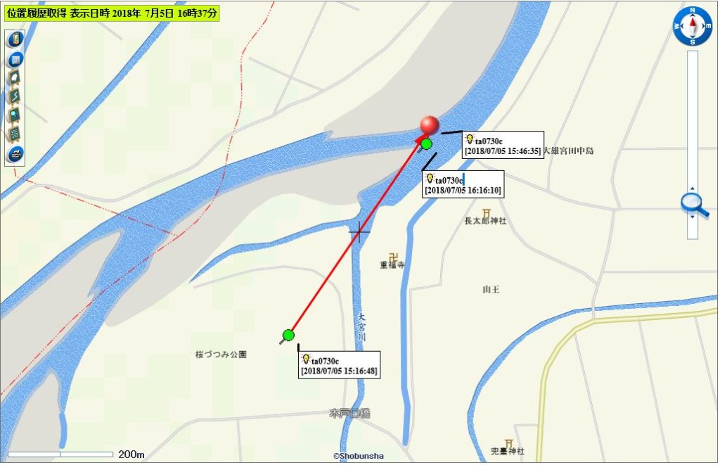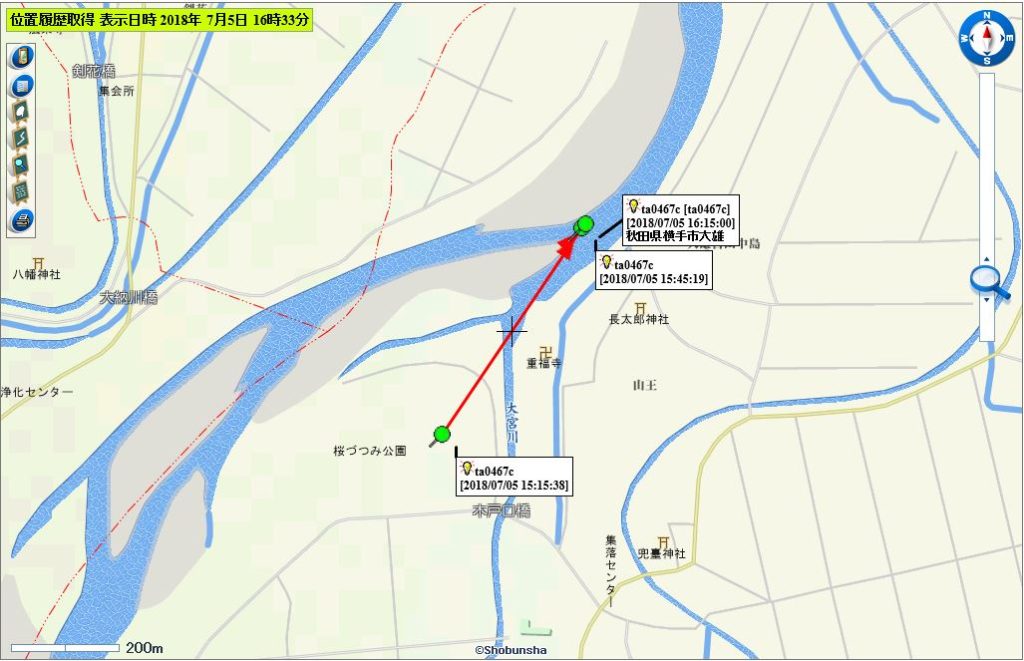 秋田県委託事業 海のゴミ、元はどこのゴミ?事業において、放流調査中の模倣ゴミの7月5日16時15分頃までの移動経路について。 8個放流したうちの4個の状況をアップします。
