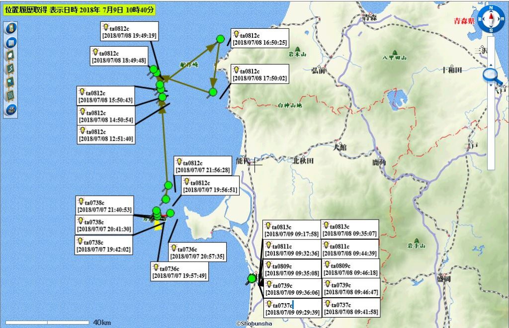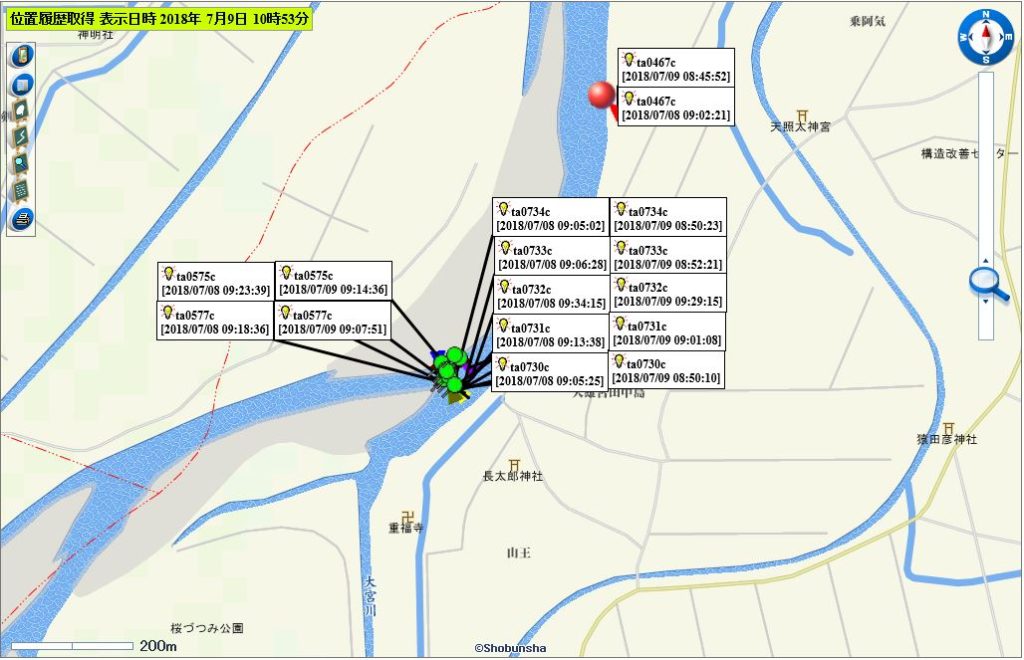 下流域(日本海を漂流中の0736c、0738c、0812cは圏外になり最新情報はない)(0737c、0739c、0809c、0811c、0813cは河口付近で停滞中と推察される)