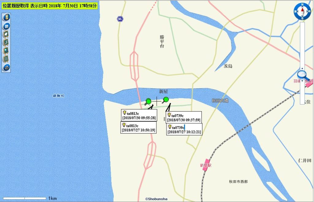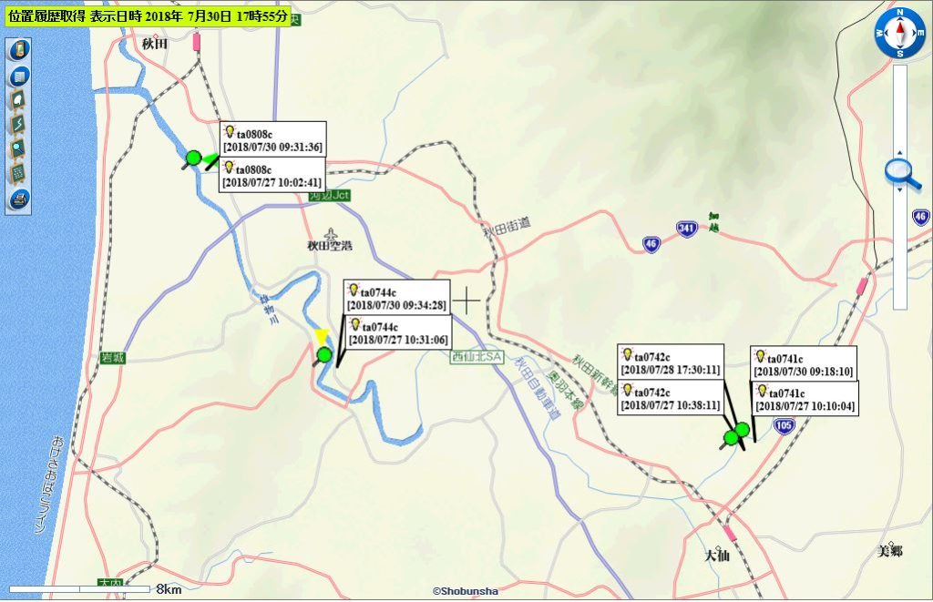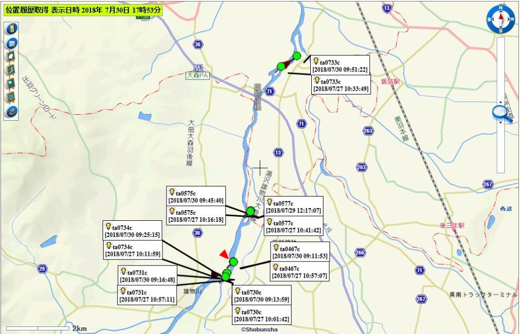 (0811cは現在も発信がない。0739c、0813cは河口付近で停滞中と推察される)