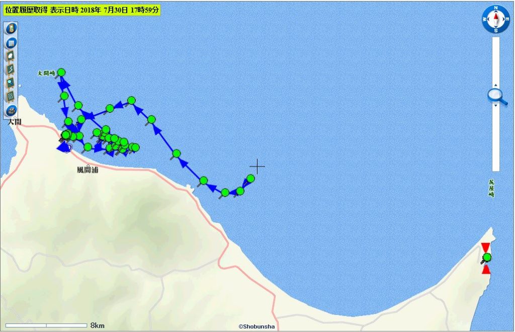 海のゴミ、元はどこのゴミ?事業において、放流調査中の模倣ゴミの7月30日10時頃までの移動経路について。