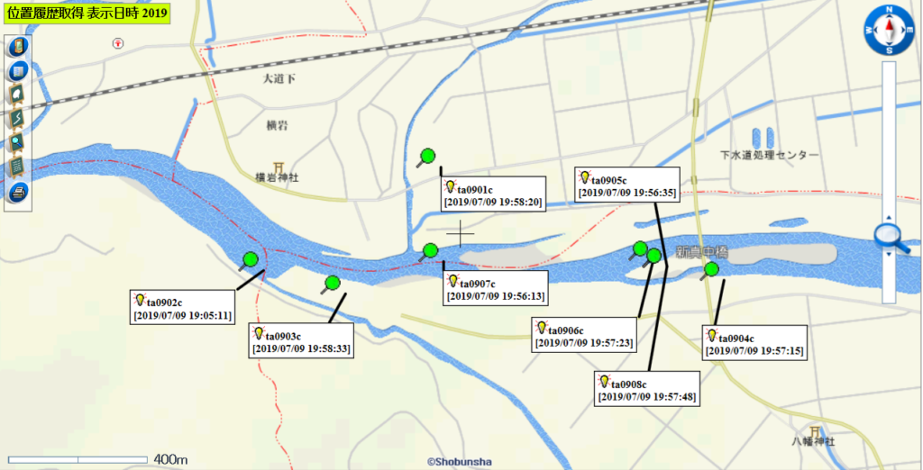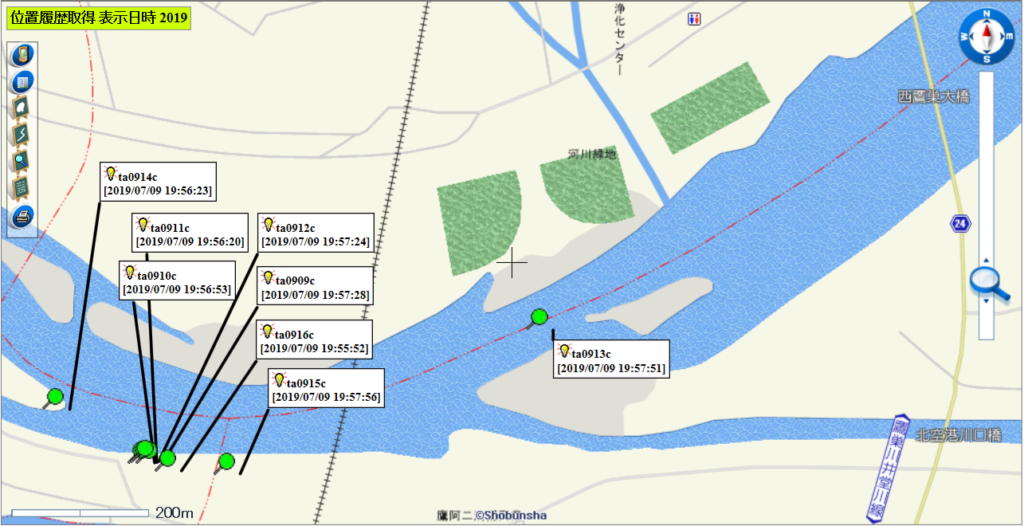 放流調査中の人工ゴミの7月9日20時頃までの移動経路について、位置情報をアップします。