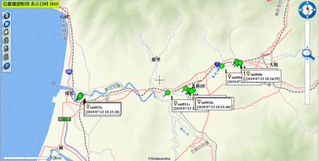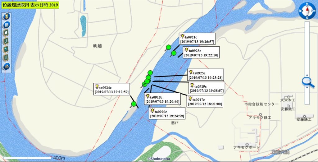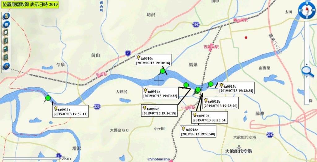 放流調査中の人工ゴミの7月13日19時頃までの移動経路について、位置情報をアップします。