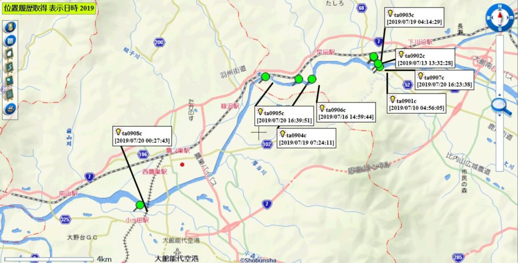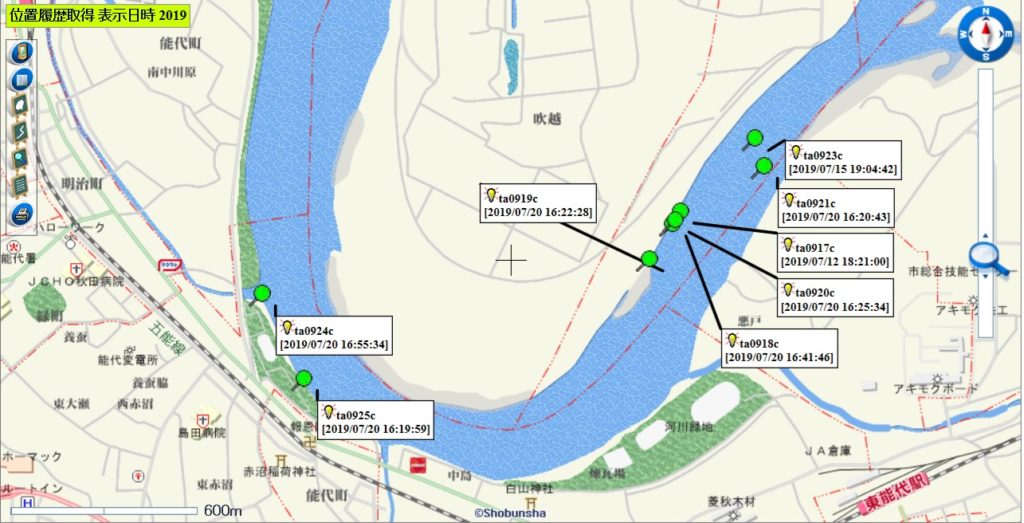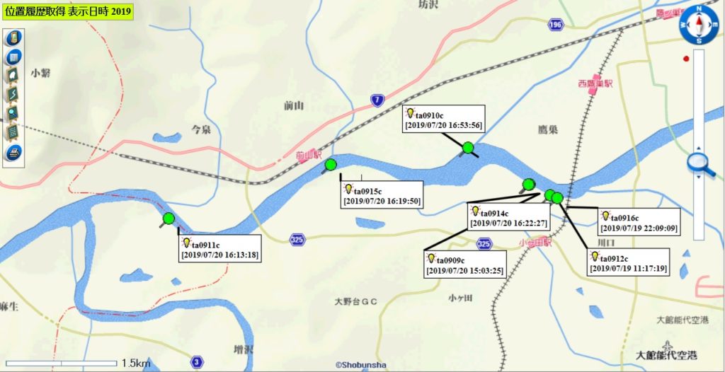 放流調査中の人工ゴミの7月20日17時頃までの移動経路について、位置情報をアップします。