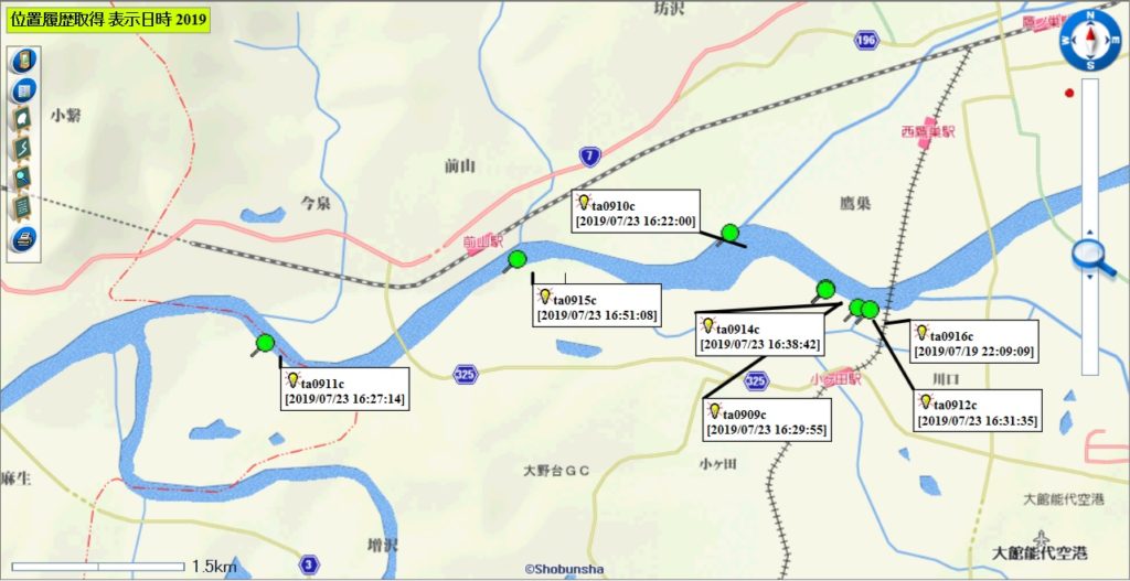 放流調査中の人工ゴミの7月23日17時頃までの移動経路について、位置情報をアップします。