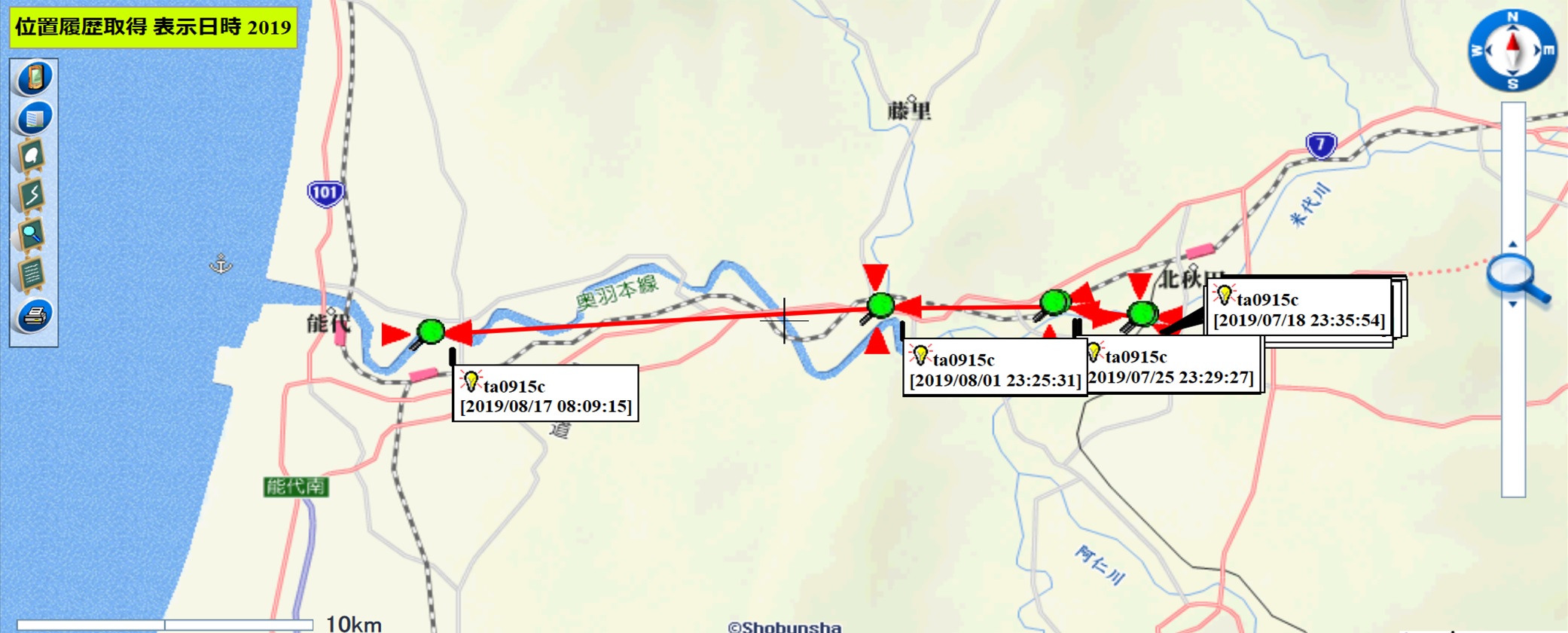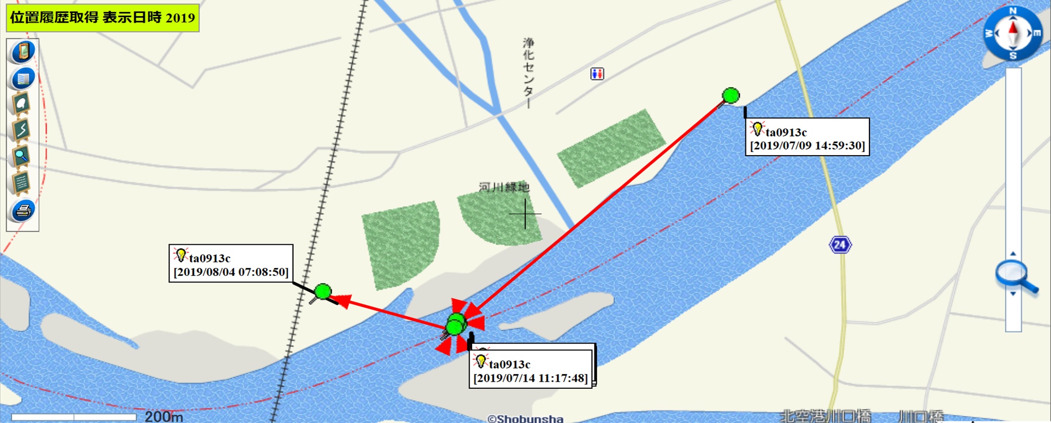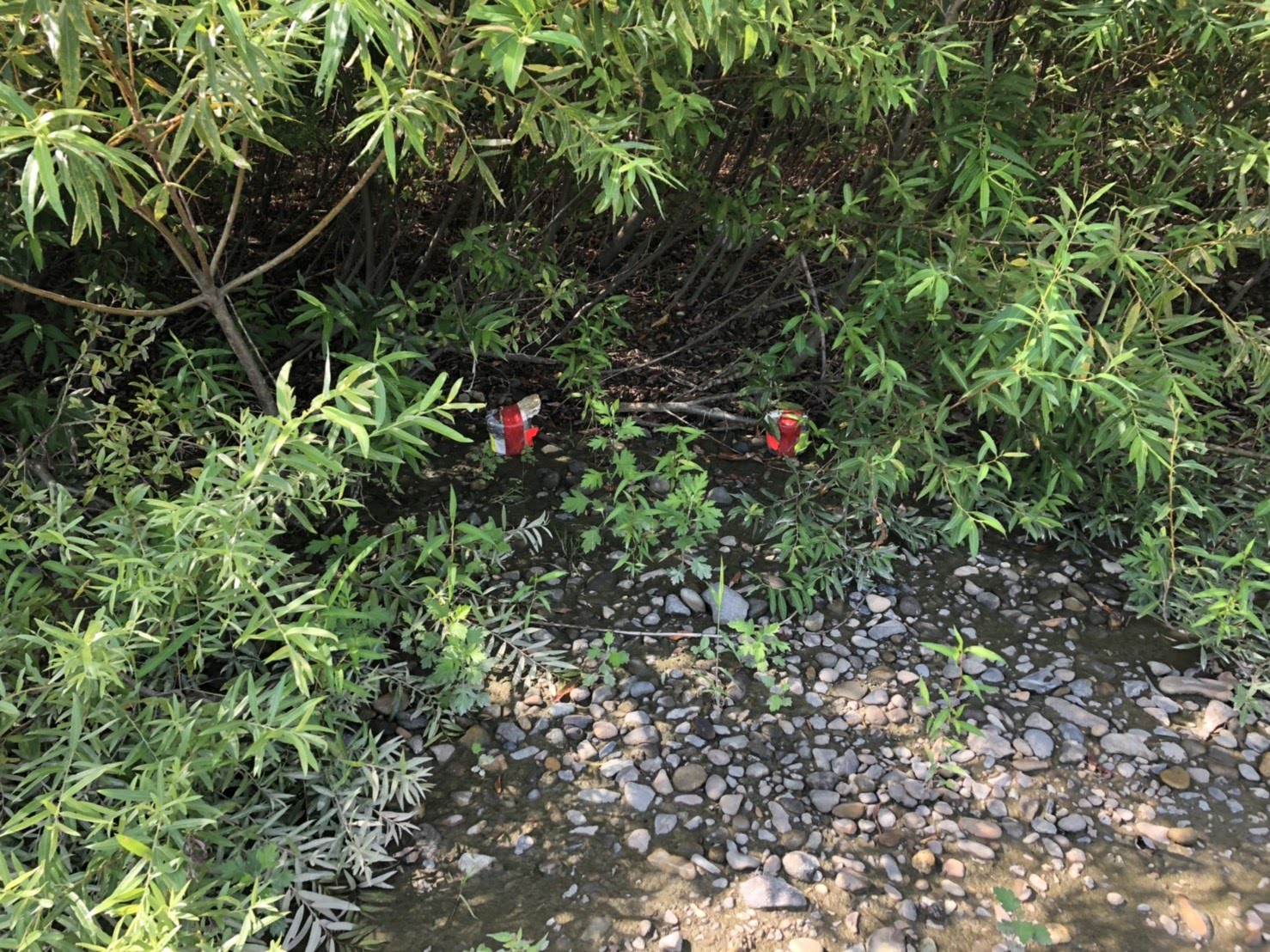 放流調査を行った人工ゴミの移動経路について、放流した24個のうち、中流域にて放流した8個の状況と一部その現地の様子を掲載します。また、調査期間の終了に伴い、一部人工ゴミの回収を行いました。