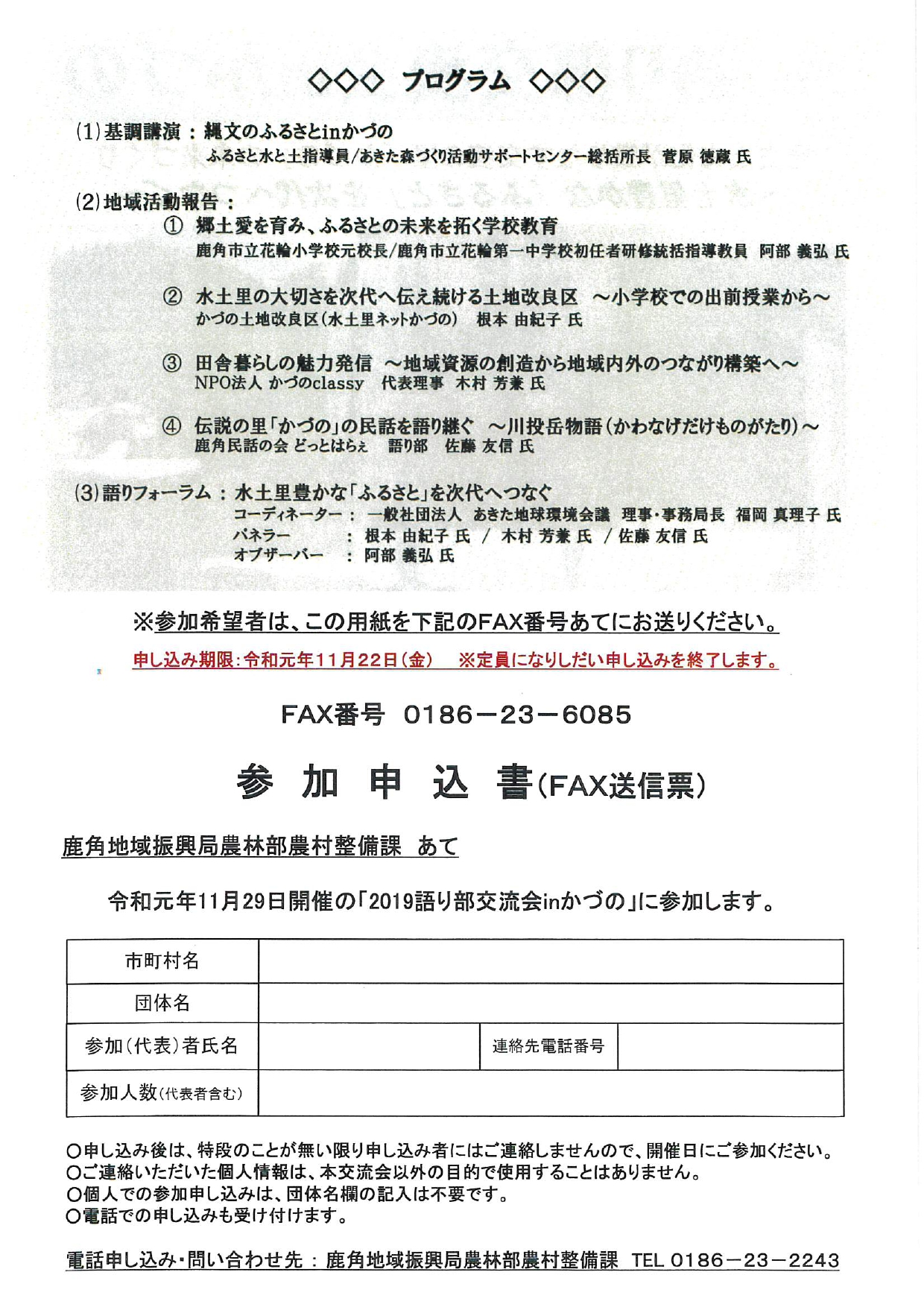2019年11月29日(金)13:00~15:45 鹿角市花輪市民センター 講堂にて「2019語り部交流会inかづの」が開催されます。当法人の事務局長である福岡がコーディネーターを務めますので、ぜひご参加下さい。