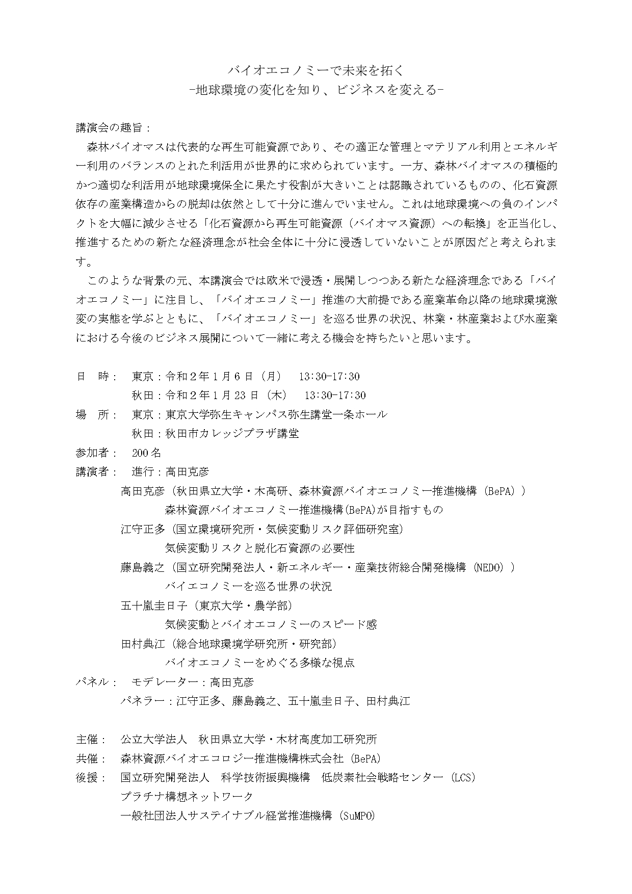 講演会【バイオエコノミーで未来を拓く―地球環境の変化を知り、ビジネスを変える―】のご案内です。