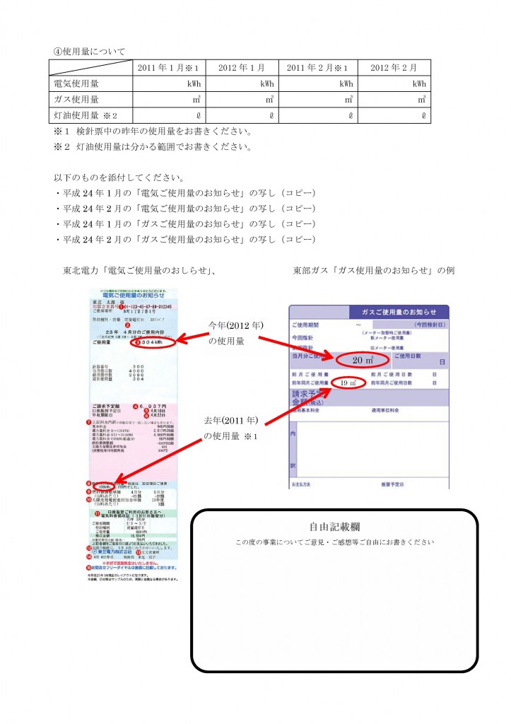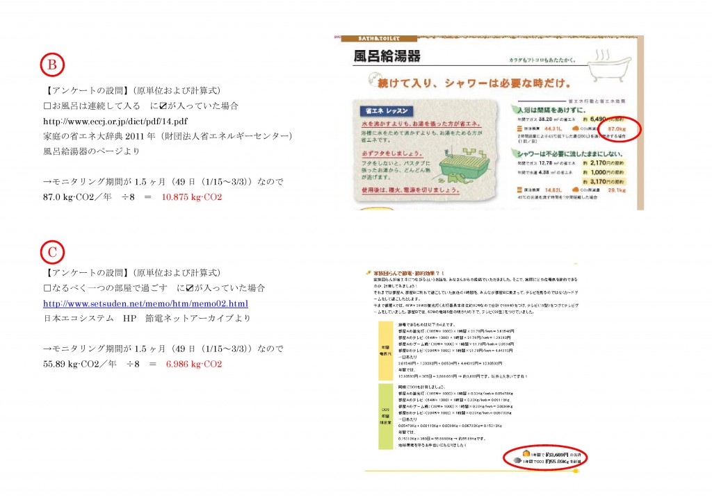 温水による洗面使用時間を減らす、お風呂は連続して入る、なるべくひとつの部屋で過ごす(家族団らん)の行動を行った。