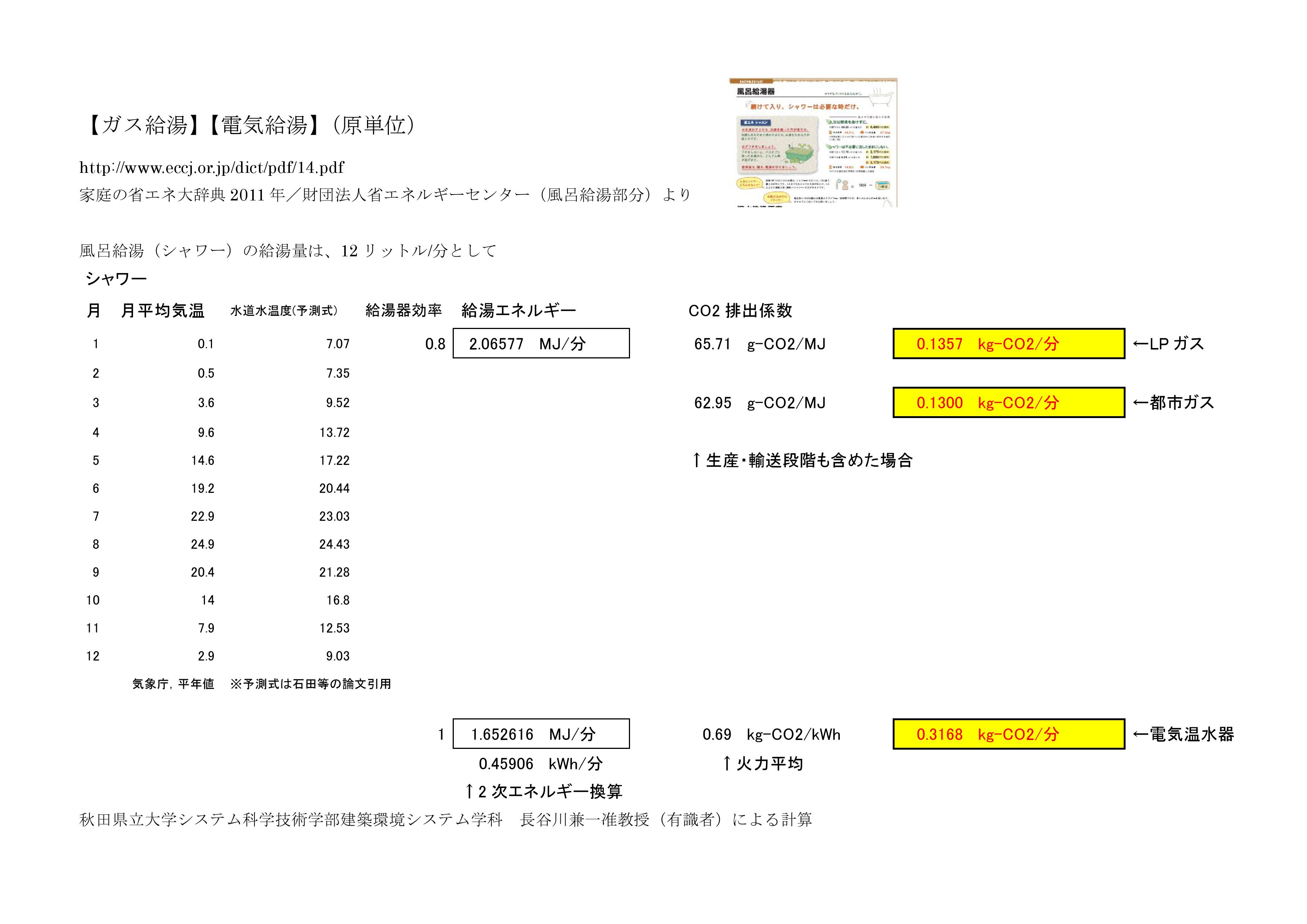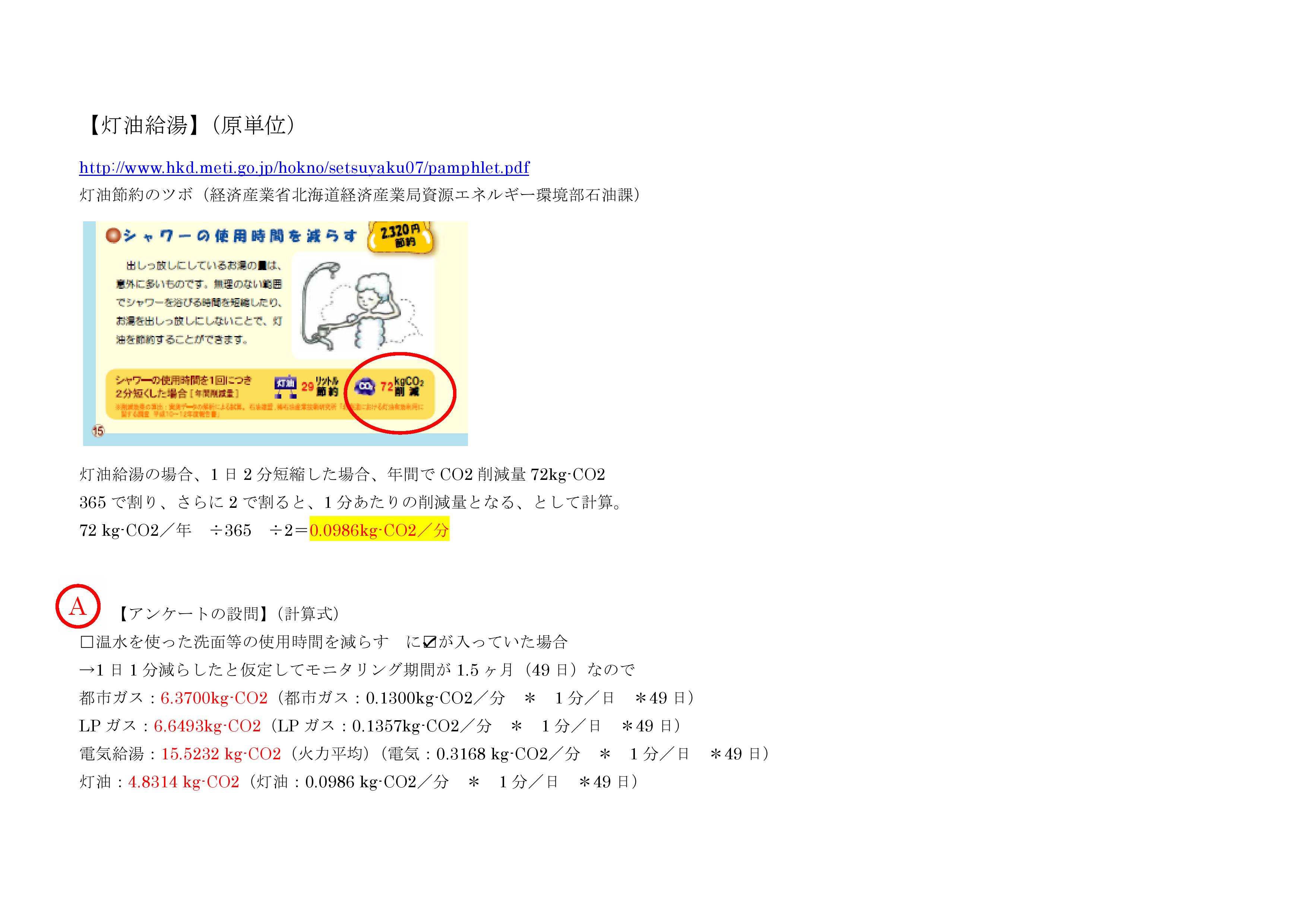 都市ガス:2.1kg-CO2/㎥  LPガス :6.5kg-CO2/㎥  灯油:2.5 kg-CO2/ℓ