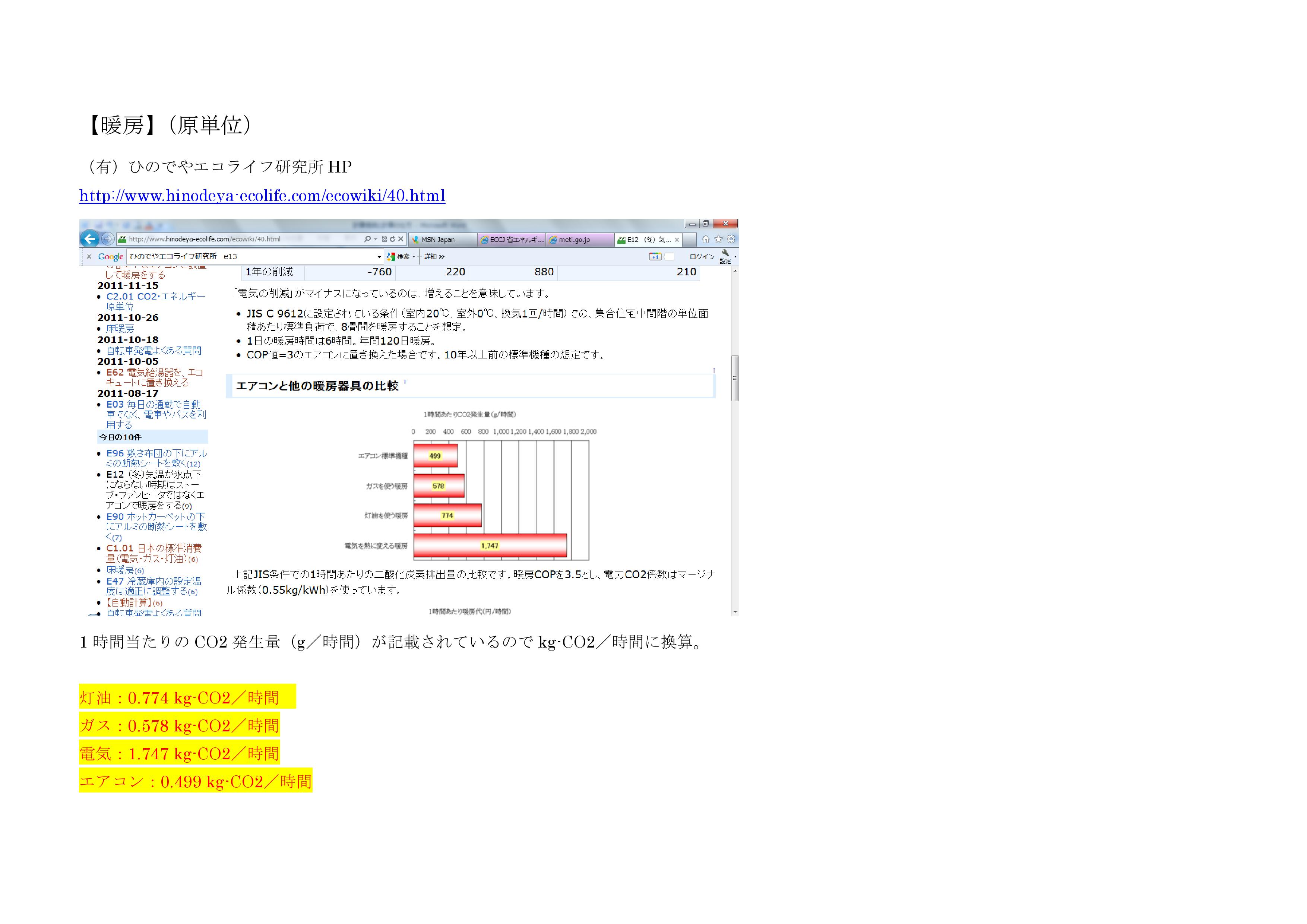 電気:0.429kg-CO2/kWh CO2排出原単位(2010年度実績/実排出係数)算出根拠資料:環境省