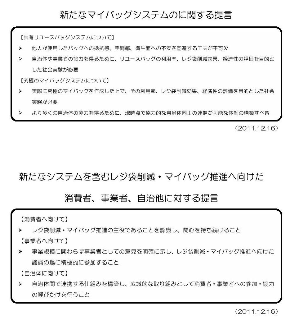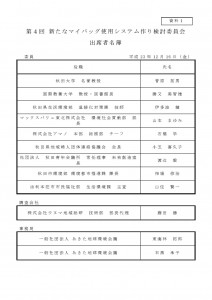 平成23年12月16日(木)、第4回 新たなマイバッグ使用システム作り検討委員会が開催され、アンケート結果の解析及び、消費者・事業者・自治体へ向けた提言案について検討されました。
