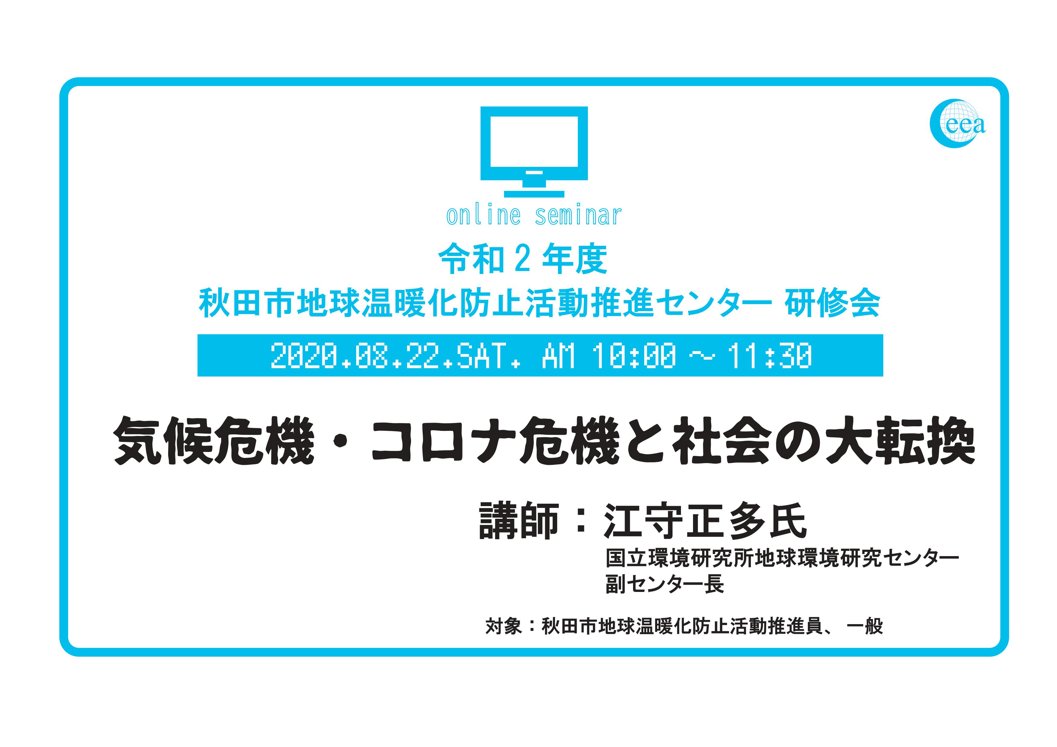 秋田市地球温暖化防止活動推進センター(あきた地球環境会議)では、国立環境研究所の江守正多氏によるオンライン研修会を開催いたします。