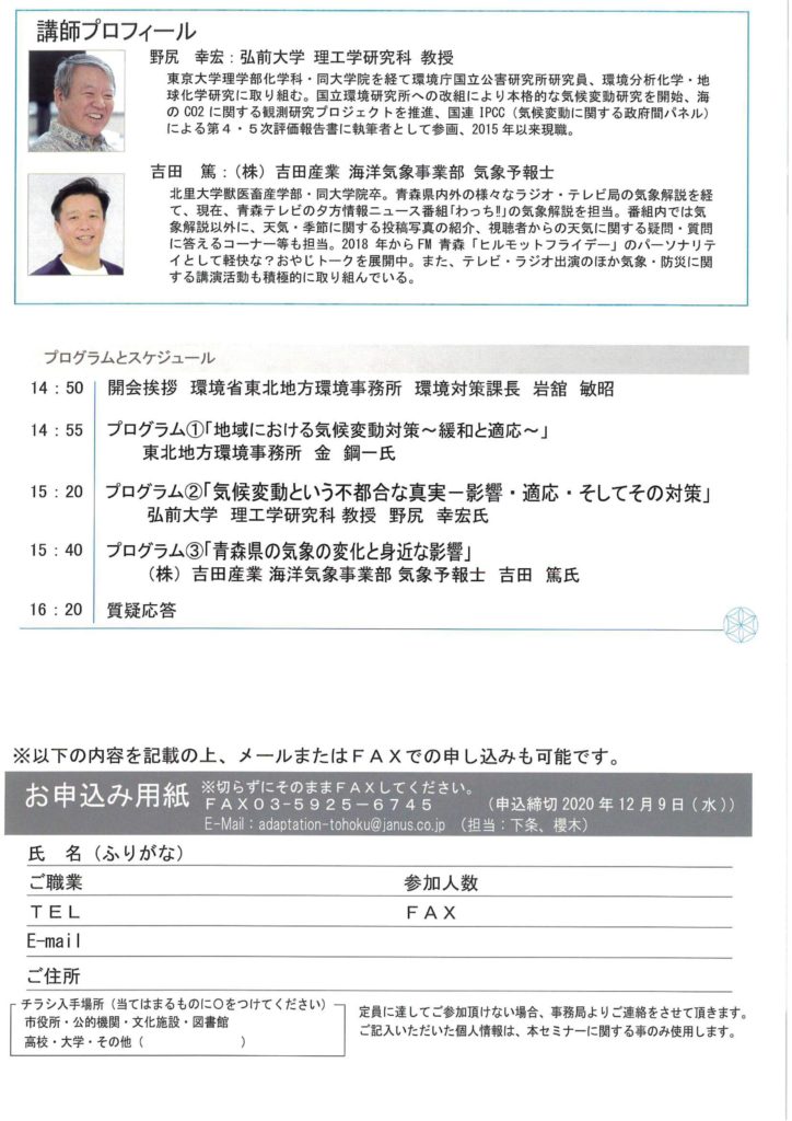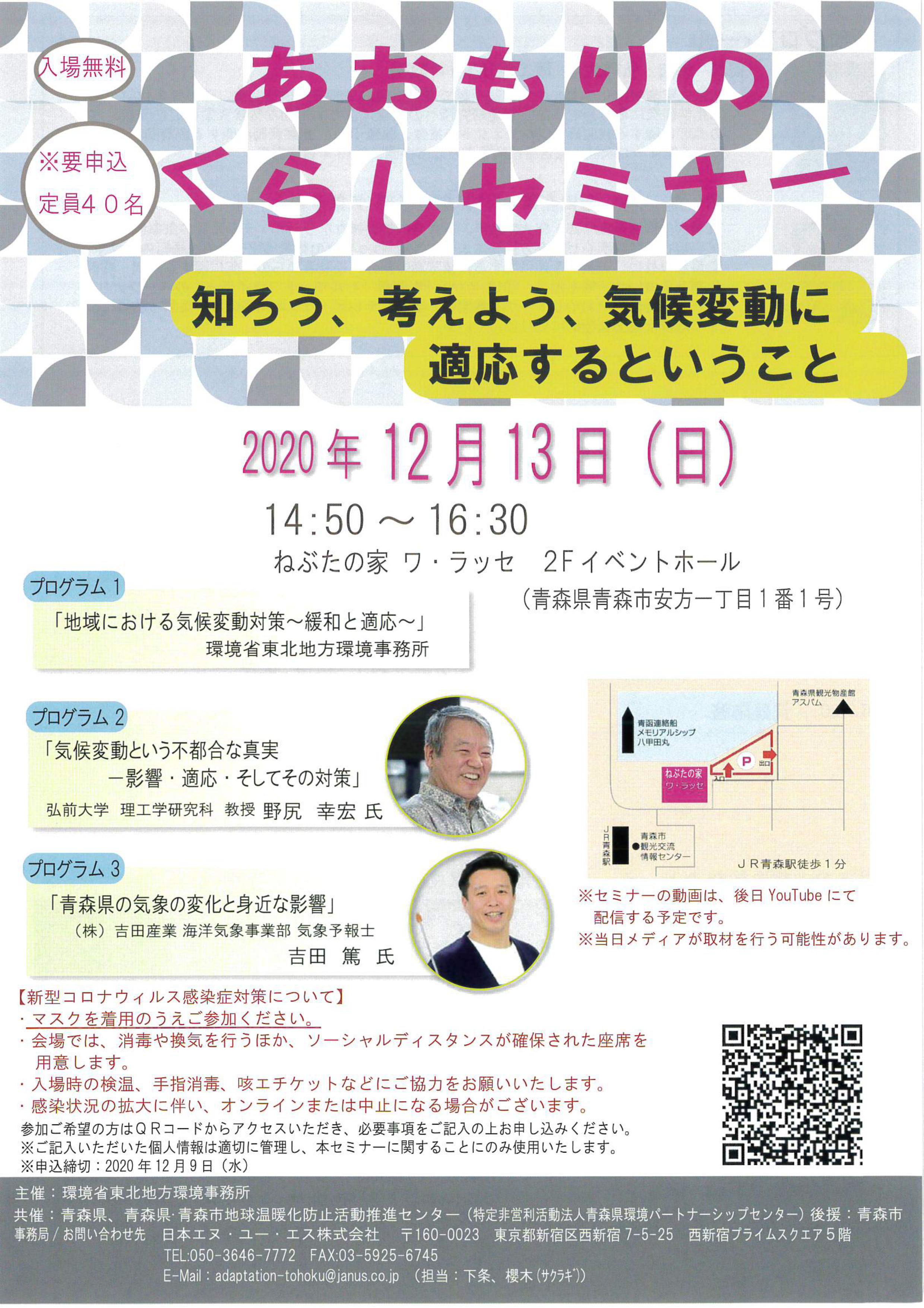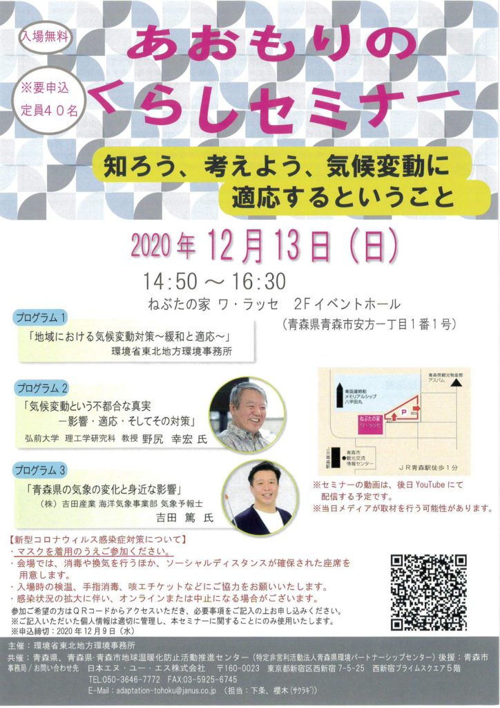 「あおもりのくらしセミナー」~知ろう、考えよう、気候変動に適応するということ~のご案内です。