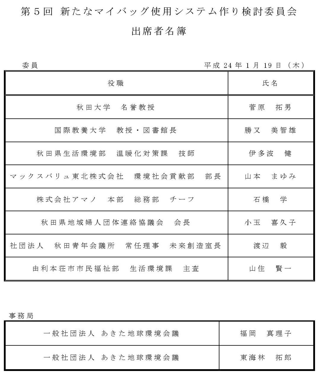 平成24年1月19日(木)、第5回 新たなマイバッグ使用システム作り検討委員会が開催され、消費者・事業者・自治体へ向けた提言や来年度へ向けた活動について検討されました。