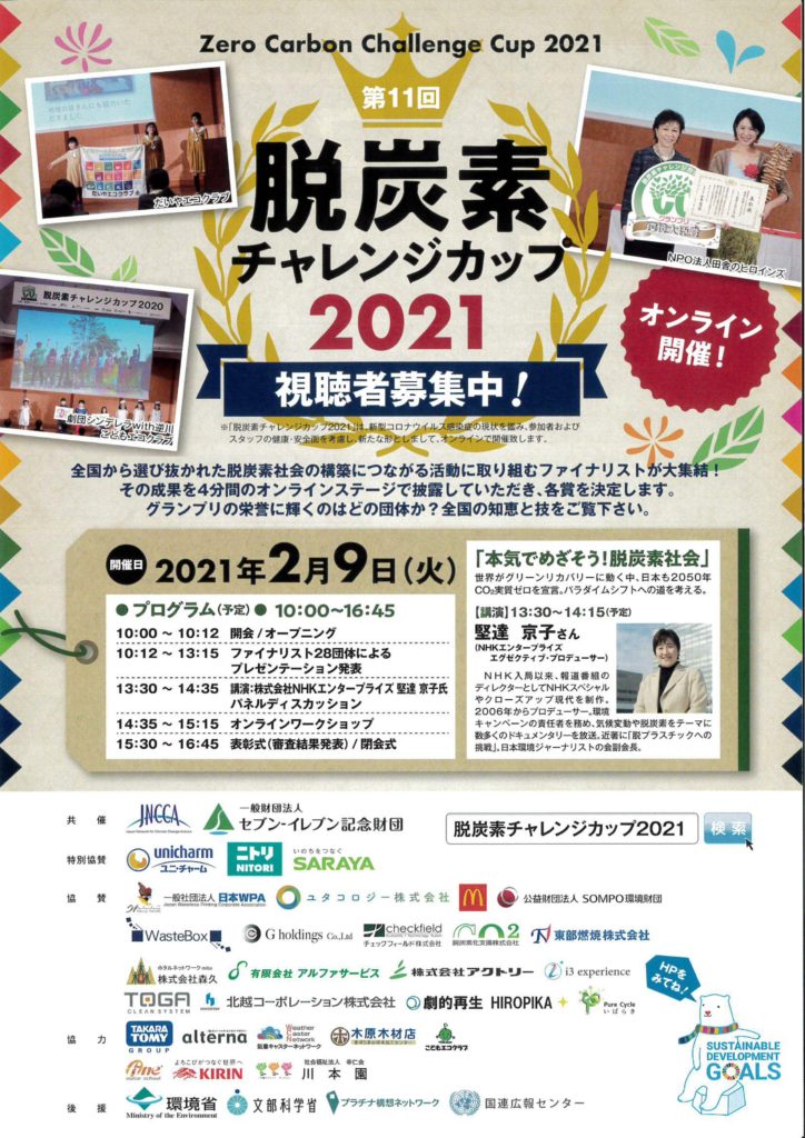 成果を競い合う「脱炭素チャレンジカップ2021」が開催されます。