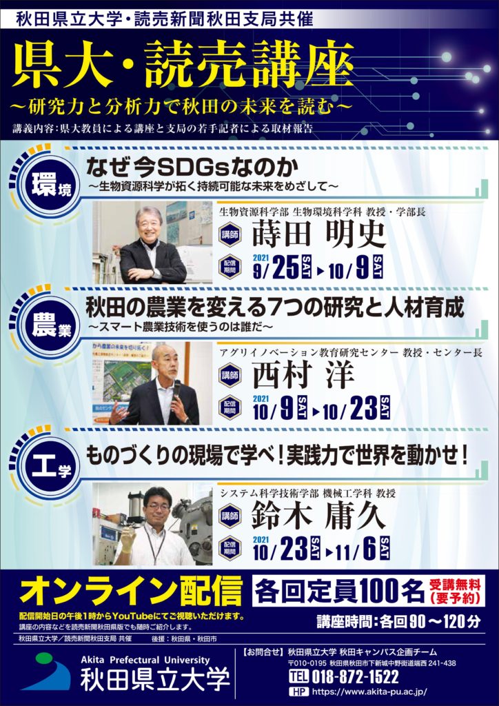 秋田県立大学と読売新聞秋田支局の共催でオンライン講座を開催します。