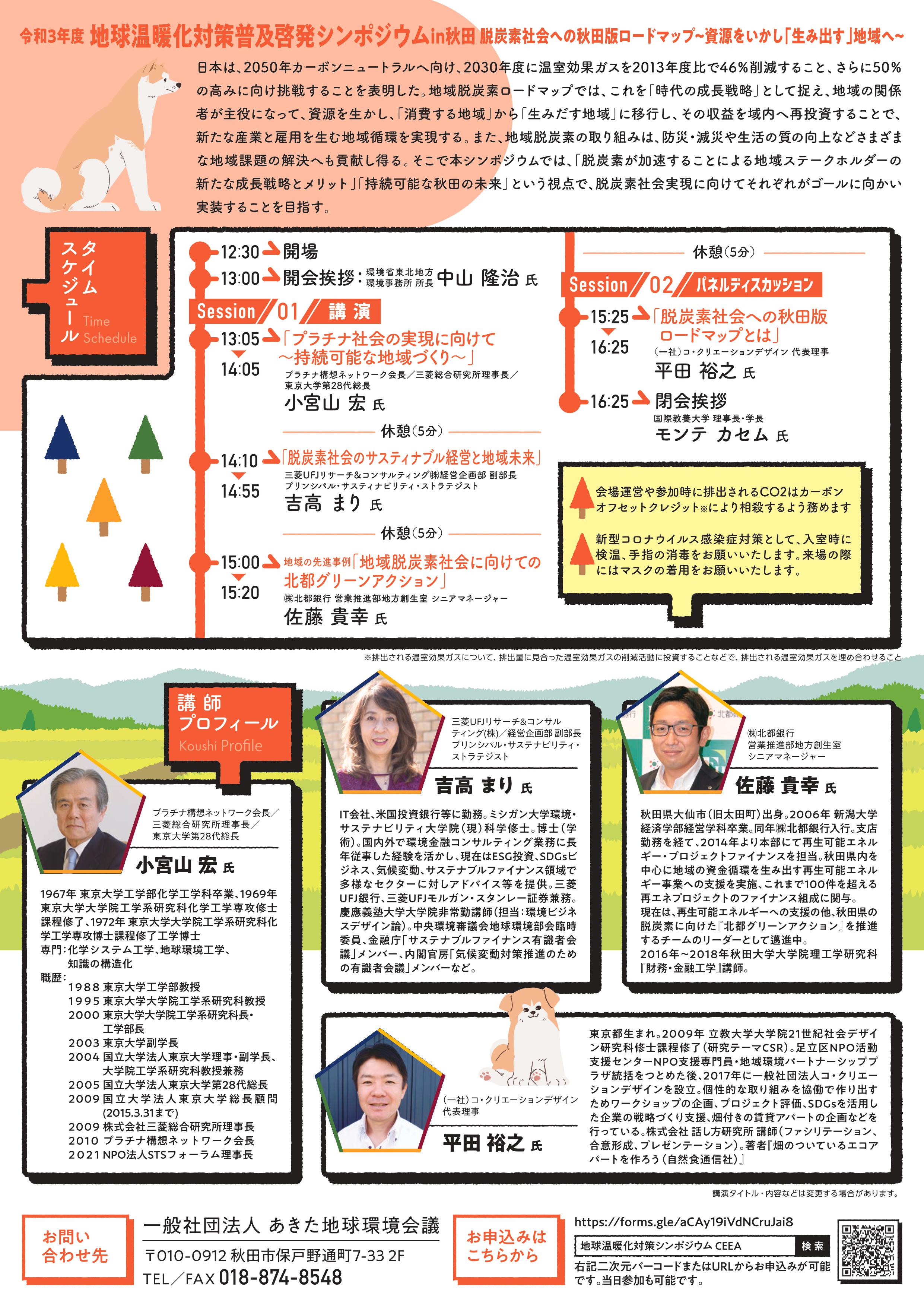 【お知らせ】「令和3年度 地球温暖化対策普及啓発シンポジウム in秋田」(11/29)のご案内