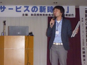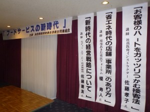 平成23年11月8日(火)、秋田パークホテルで「フードサービスの新時代」と題して行われた講習会にて、秋田県が実施中の中小企業向け「無料省エネ診断」「省エネ改修補助金」の事業説明を行いました。