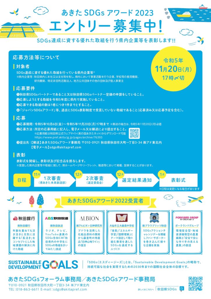 【お知らせ】あきたSDGsアワードエントリー募集中です