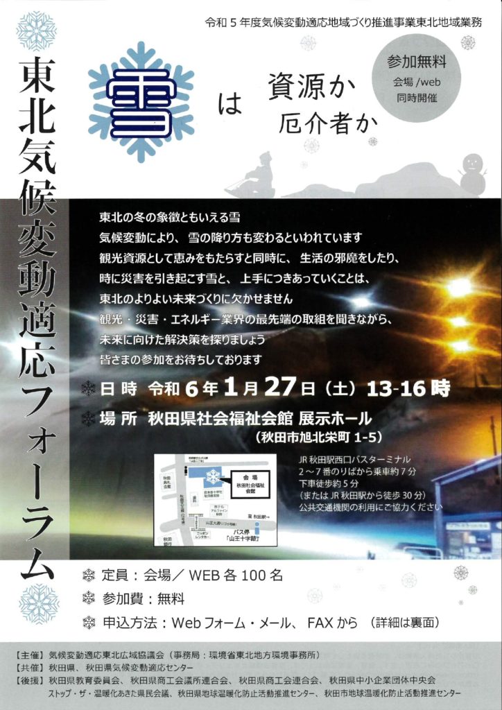 令和6年1月27日(土)東北気候変動適応フォーラムが開催されます!