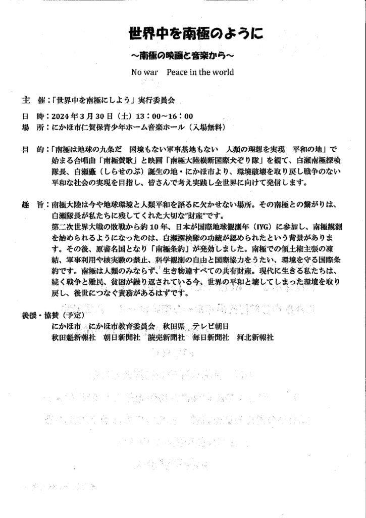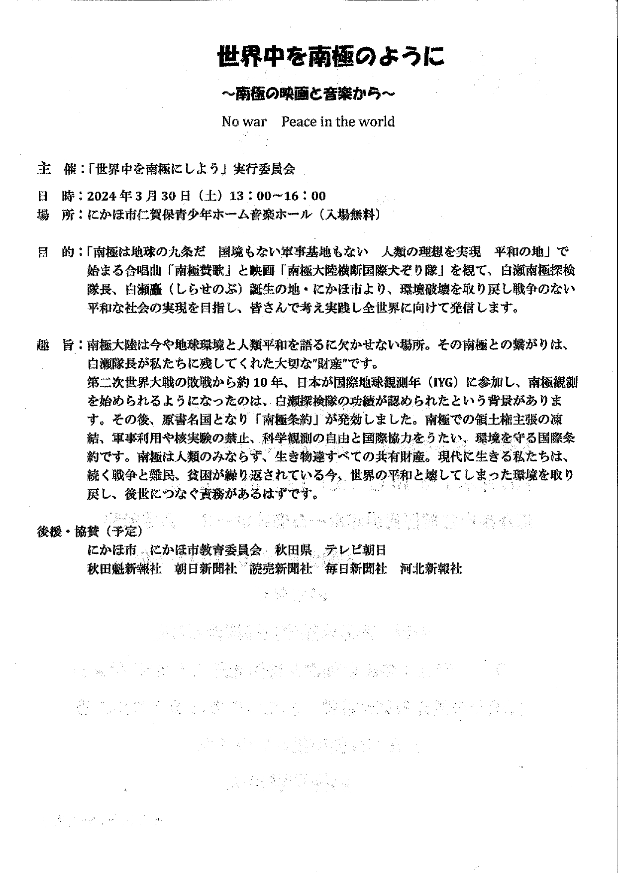 にかほ市で南極をテーマにしたイベントが開催されます。