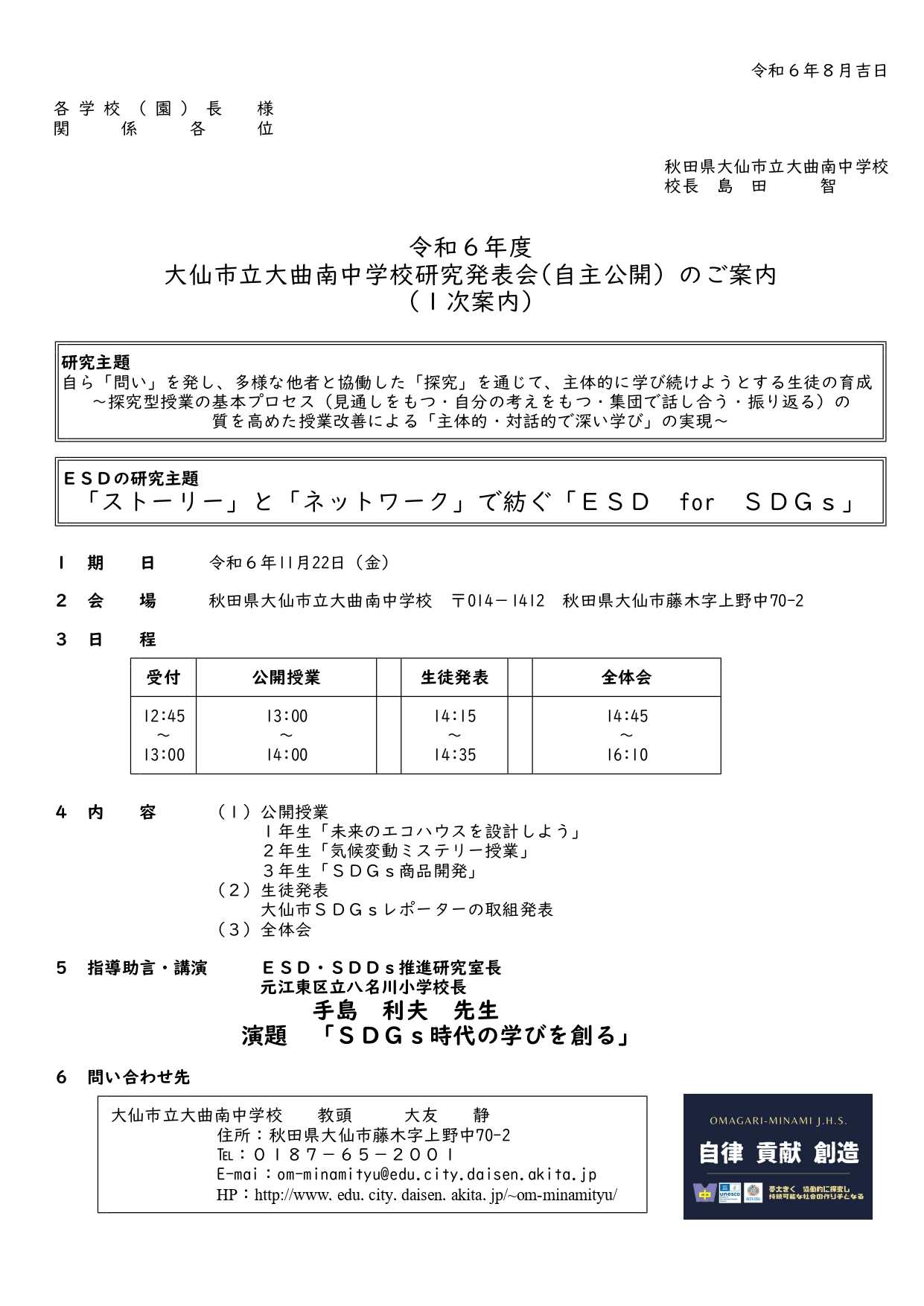 大曲南中学校で研究発表会(自主公開)が開催されます!