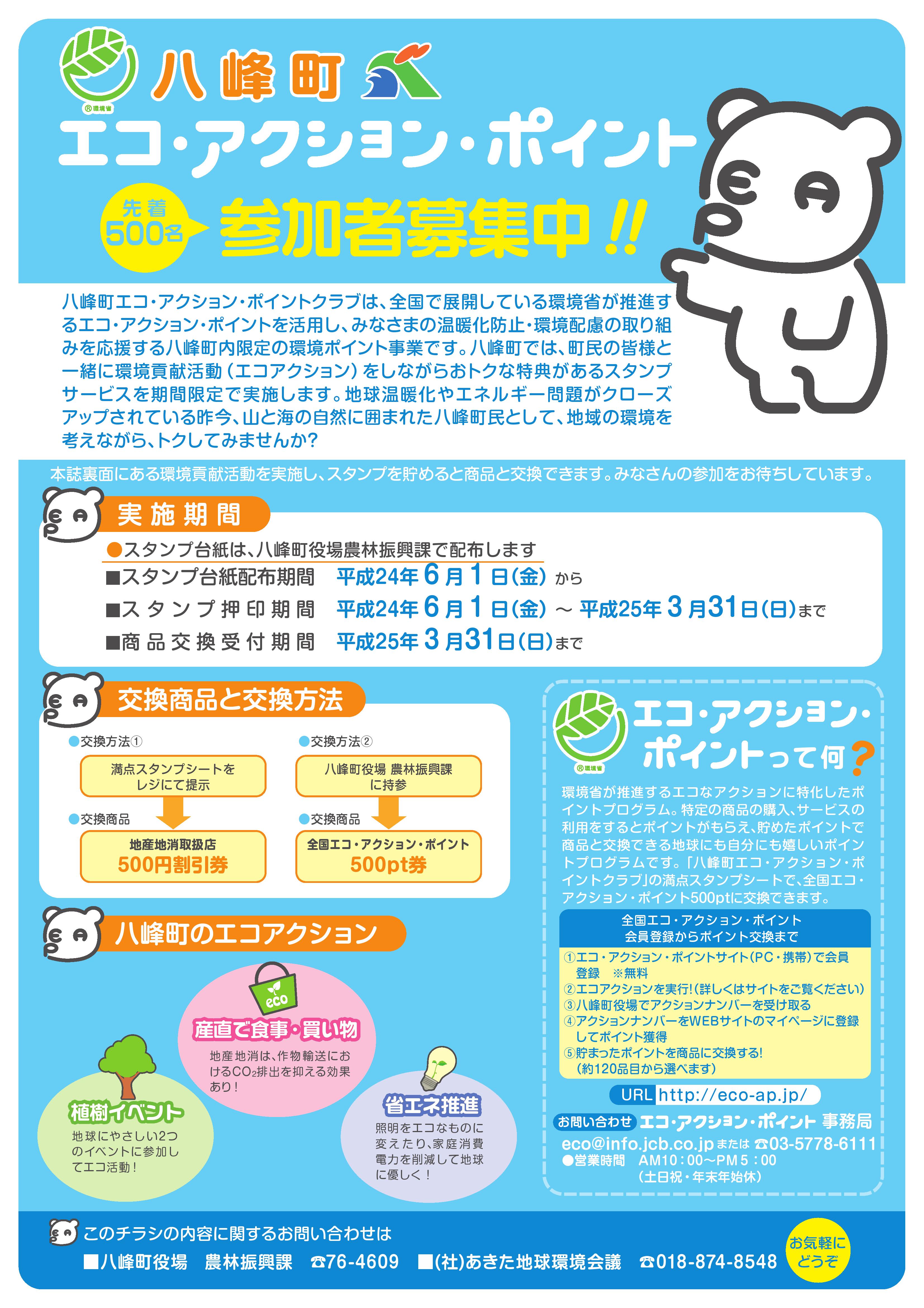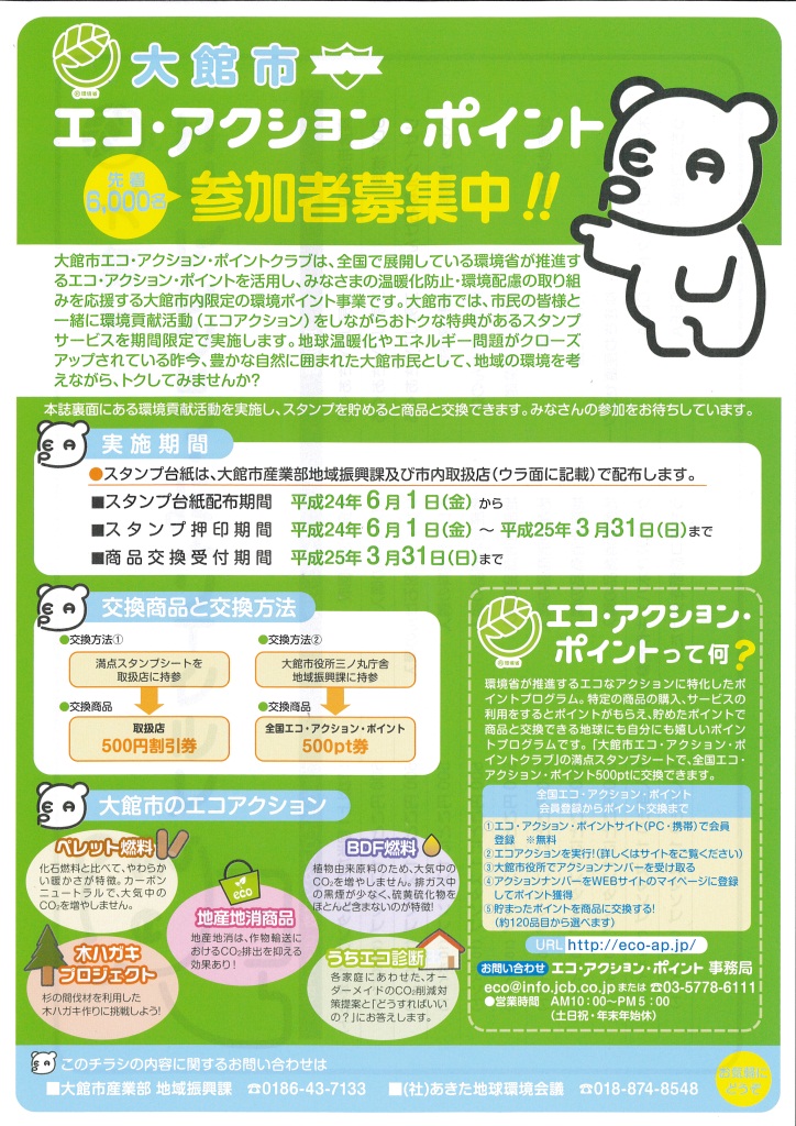 平成24年6月から,いよいよ,大館市と八峰町でエコアクションポイントクラブがスタートします.