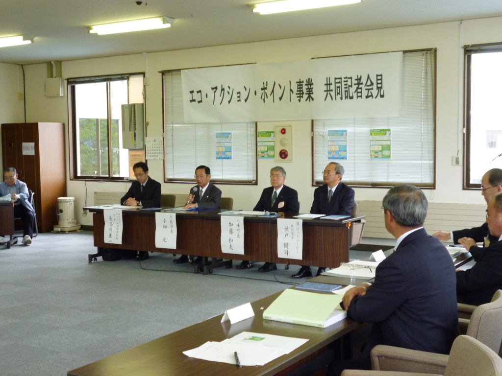 このポイント制度のスタートに併せて,平成24年5月28日に,大館市,八峰町,株式会社JCB,あきた地球環境会議による共同記者会見を開催しました.