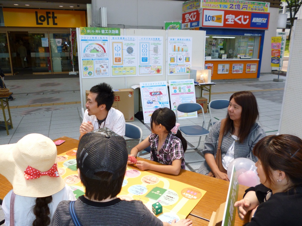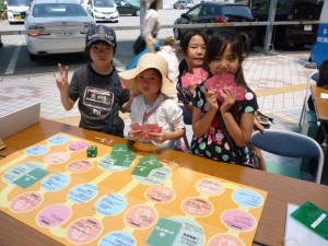参加者同士で,節電や省エネについて「知っていること」「意識していること」「やっていること」を「すごろく」を通じて共有しました.「私も同じ!」と共感できる内容や,「新発見!」という内容には「いいねカード」で応えて,お子さんだけでなく,お母さんやお父さんも一緒に盛り上がりました.