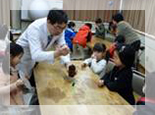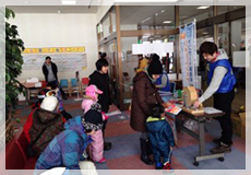 本事業では、秋田市明徳児童センターの協力を得て、ここに通う小学生を対象に『ウォームシェアでサイエンスツアーにGO』への参加を呼びかけました。参加児童には、明徳児童センターの職員さんにも協力してもらい、「暖房電源オフ」での参加をお願いしました。なお、秋田市明徳小学校の学区は、秋田市地球温暖化防止活動推進員(以下、秋田市推進員)の伊藤睦子さんの活動エリアであり、伊藤さんには、企画の初期段階や児童センターへとの連絡調整についてもご協力いただきました。また、当日は、同じく秋田市推進員の佐藤英明さんによる「ウォームシェア」についてのレクチャーも実施されました。