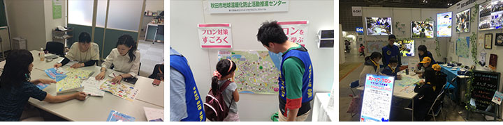 開発した教材は、県内の環境イベントにおいてフロン学習ブースを出展し、パネルや資料等と併せてフロン対策に関する啓発に活用しました。また、国内最大級の環境イベントエコプロダクツ展にフロンブースを設置し、LEDパネル展示での事業紹介や、すごろくやデジタル紙芝居等による参加型のフロン普及啓発を行いました。