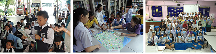 平成25年度から継続して展開しているサバ州コタキナバル市でフロンに関する普及啓発活動を今年度も実施しました。フロンすごろくをマレーシアバージョンにカスタマイズし、これまで本事業で開発したフロン学習教材と併せて、マレーシア コタキナバル市内の5つの学校にてワークショップを実施し、200名を超える現地の学生にフロンに関する知識の普及・意識の向上を図りました。